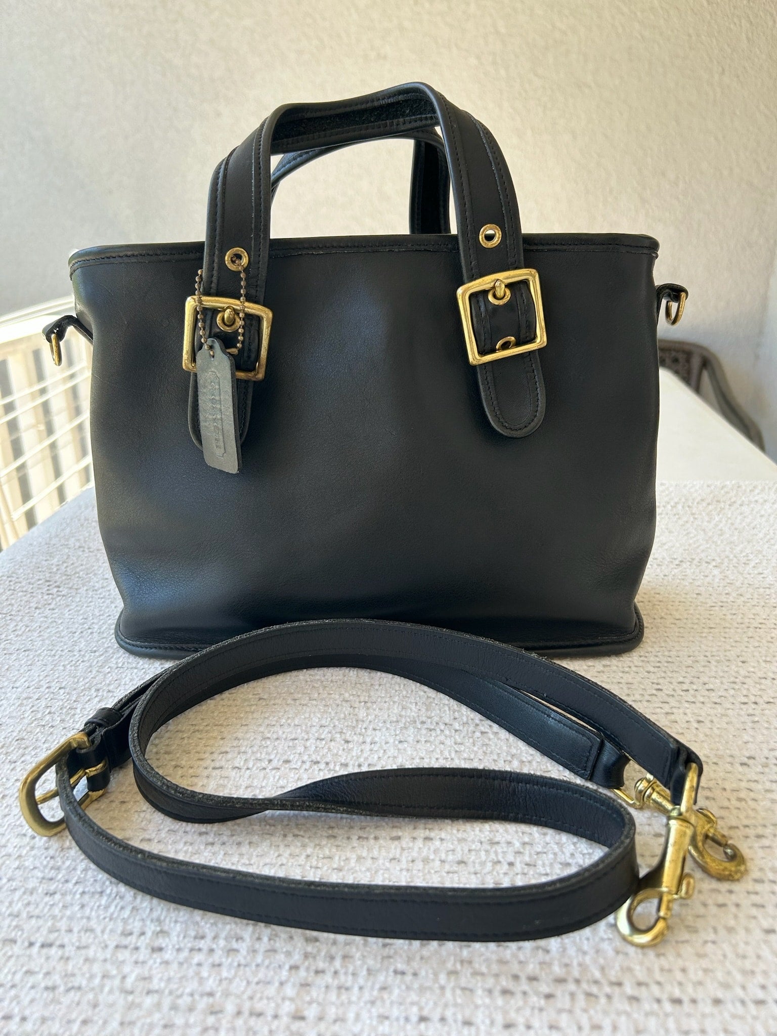 FOR SALE Coach 9063 Legacy Satchel Style Name: Coach 9063 Style Number: 9063 Color: black Year Made or Made Prior to 1994: 1999 Made Where: Costa Rica Original Hang Tag: yes Condition, Positives, Flaws, Items to Note: This bag is in good condition. Inside is clean, minimal scratches. Corners are good, zipper pull is missing. No smells. Any repairs, cleaning/conditioning products used, dunking, etc: cleaned with lexol and leather cpr. No coloring: no No dunking, paint, dye, shoe polish or shoe crème. No odor. Preventative measure: Vinegar spray and let in sun for 3hrs.