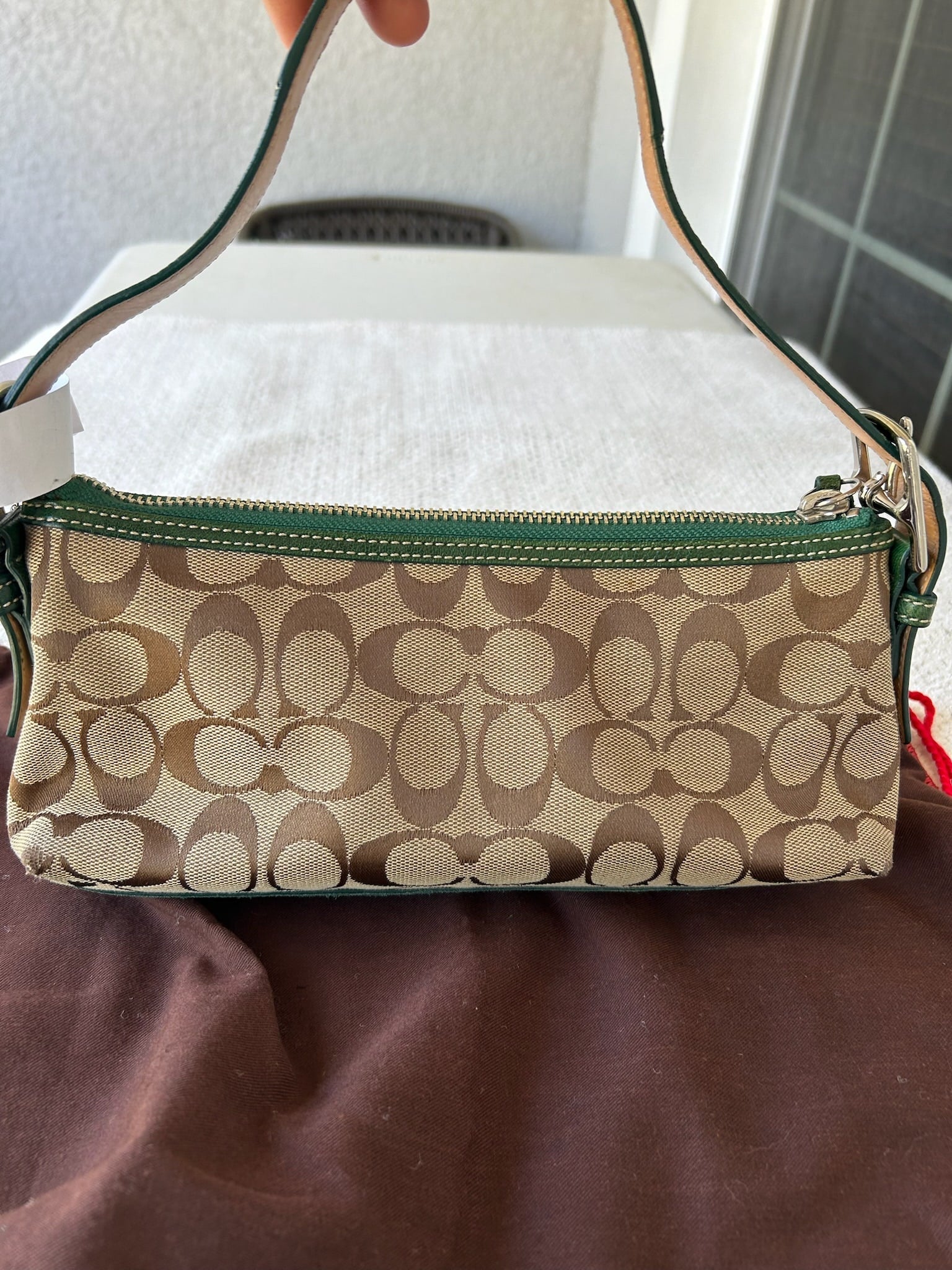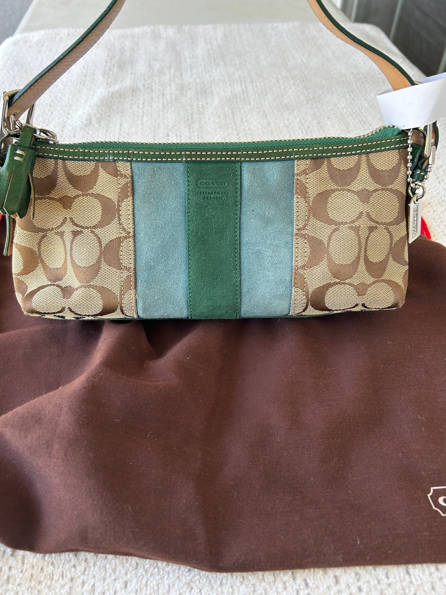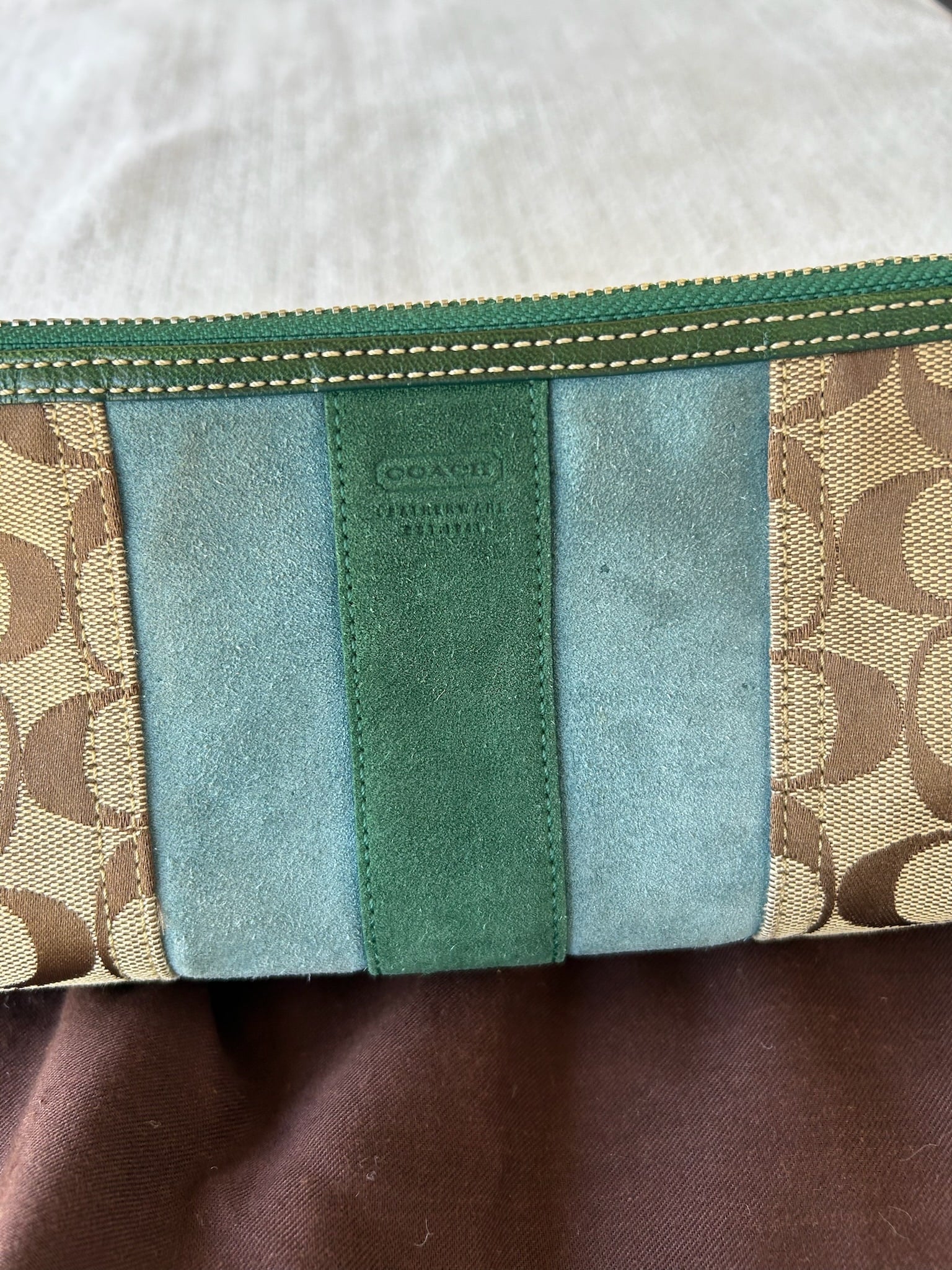 Coach 7039 Brown and Green Leather and Suede Signature Bag
