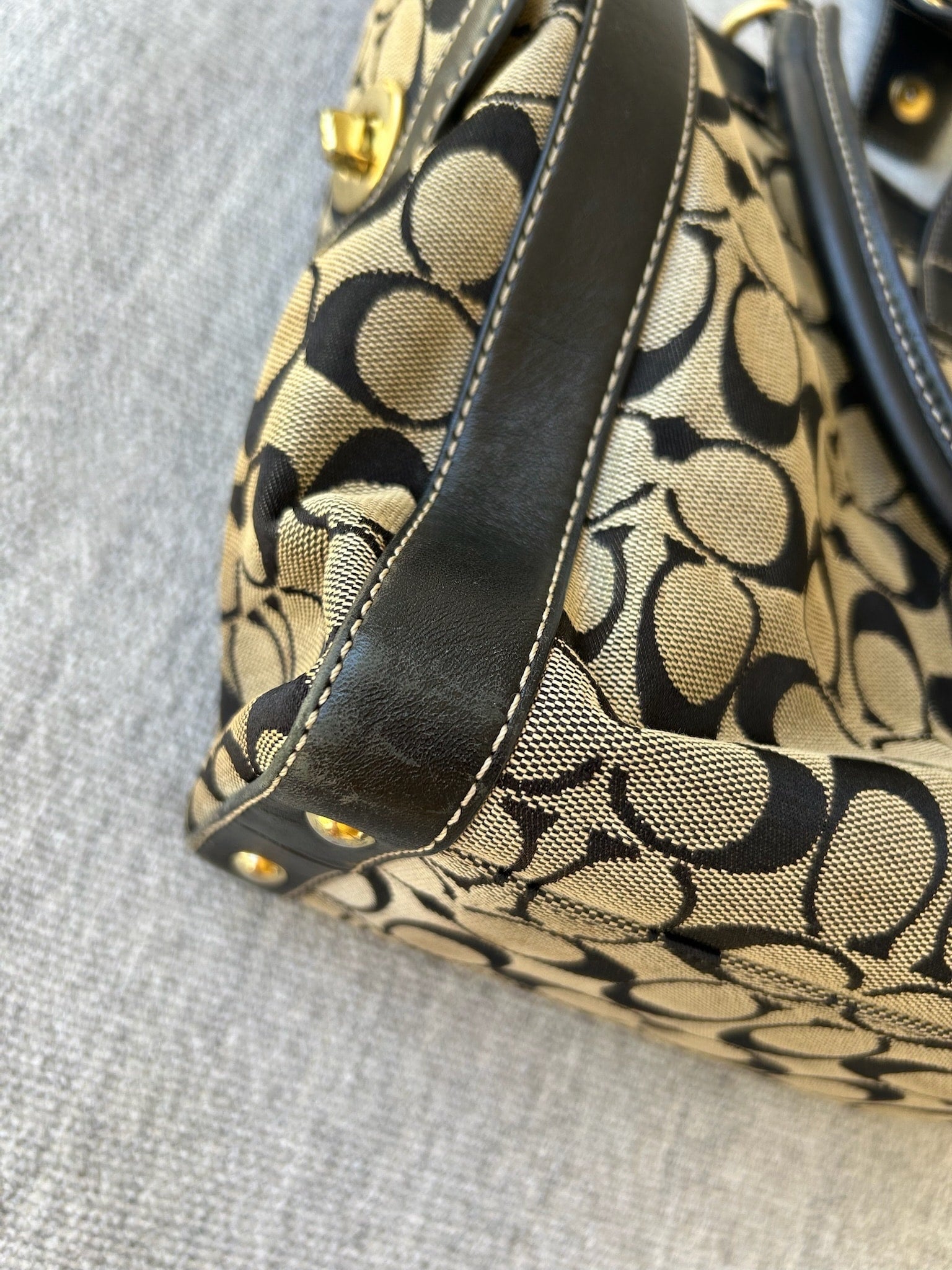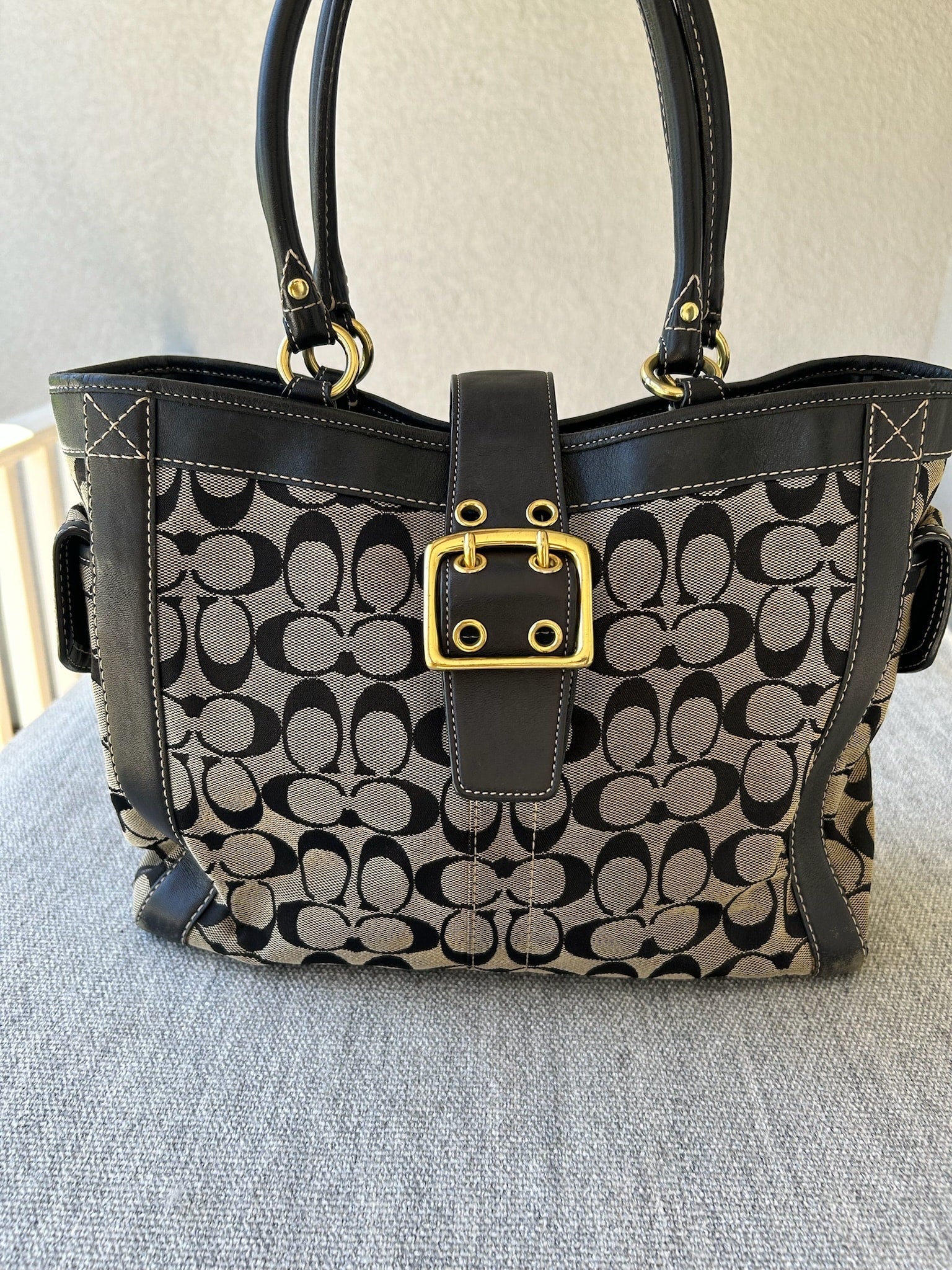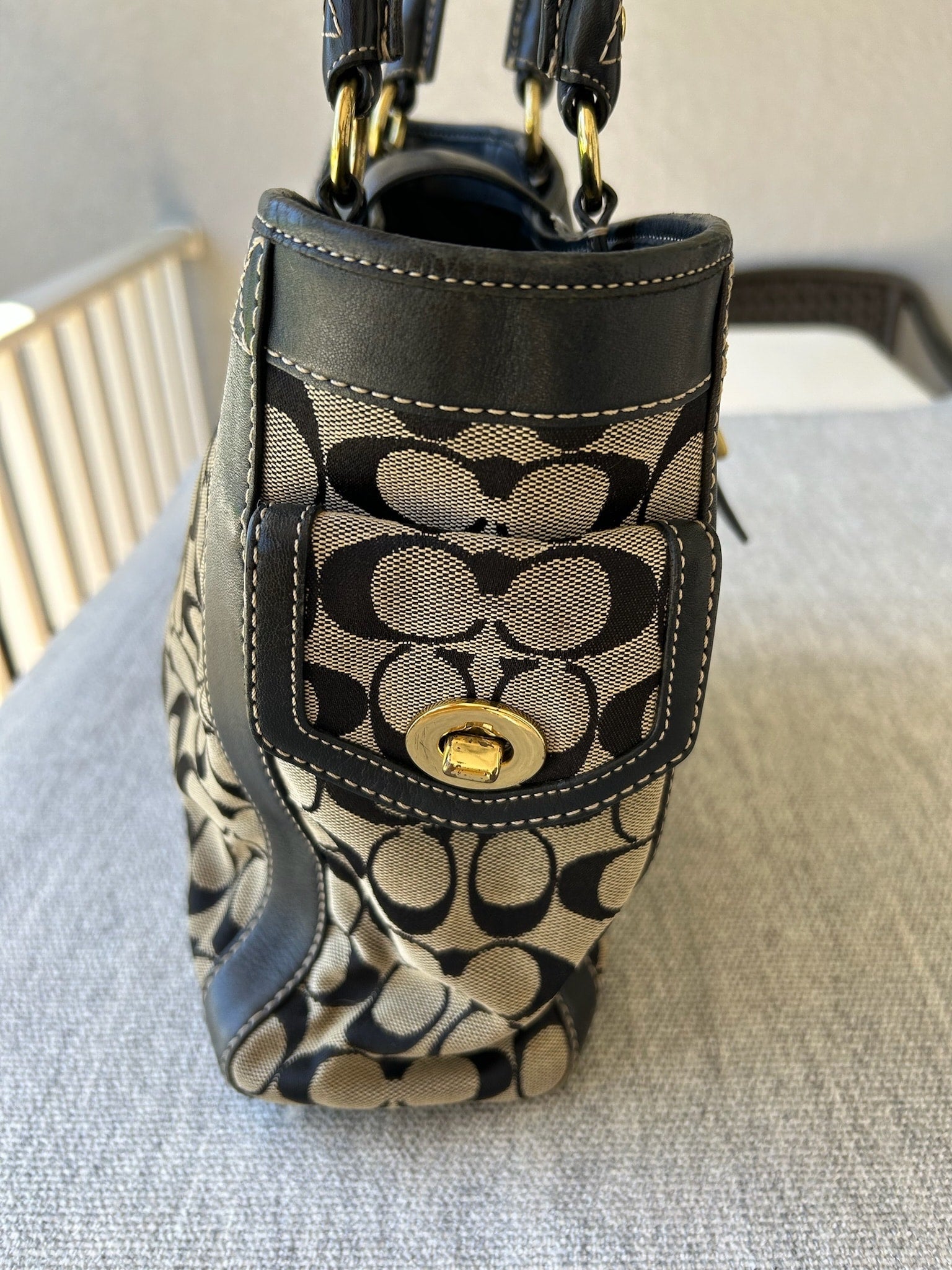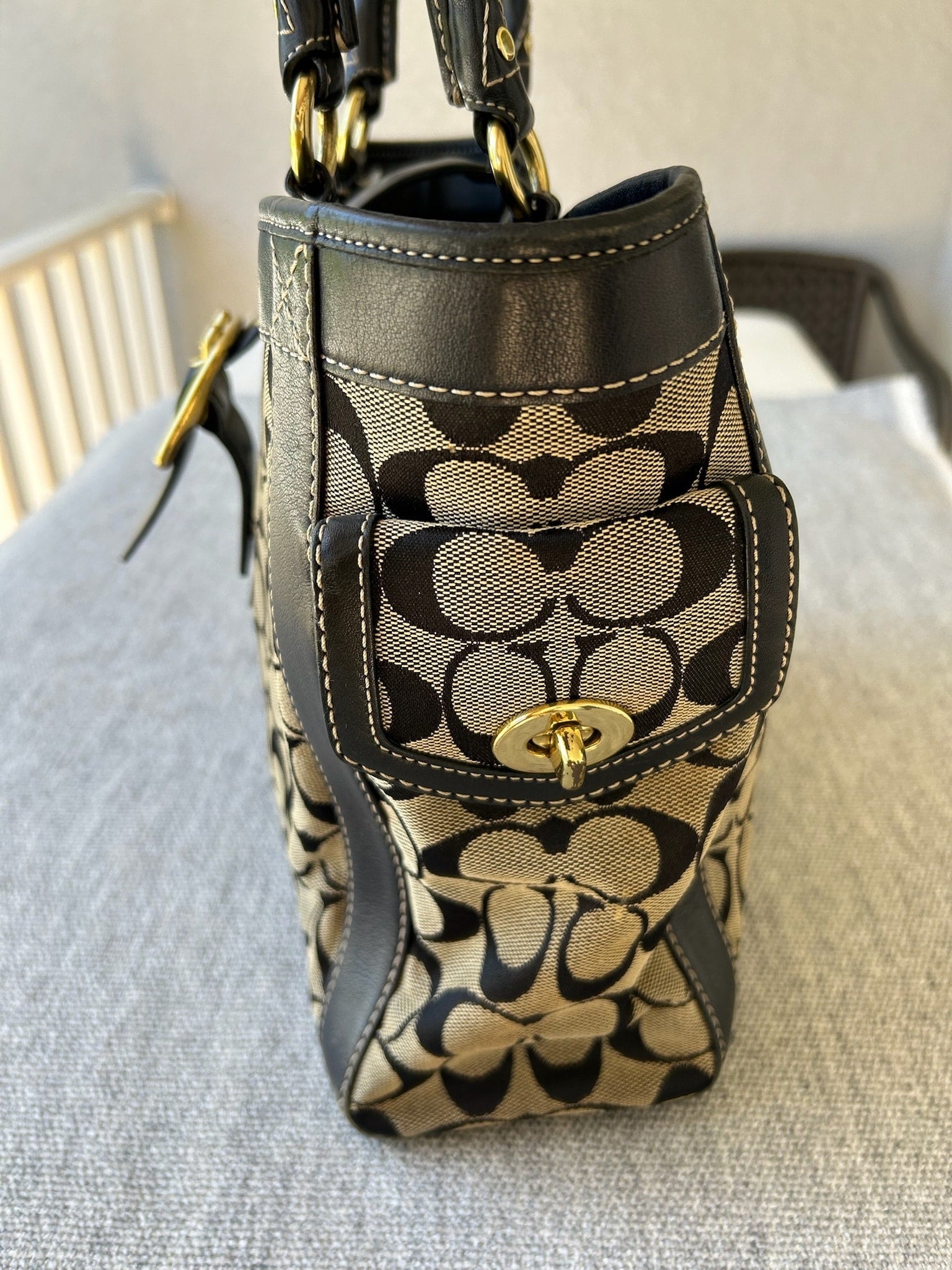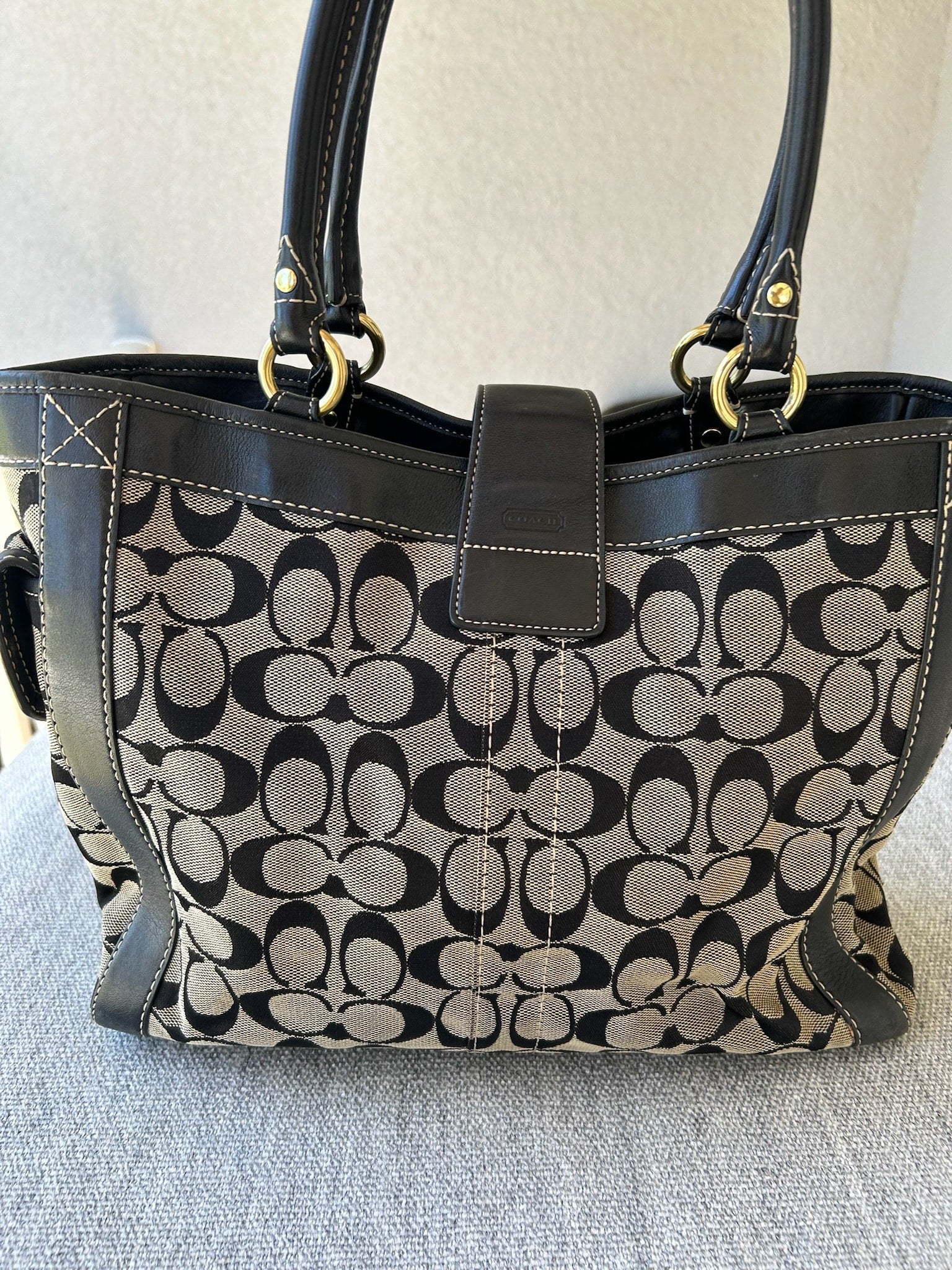 Coach Black and Tan Signature Tote Bag