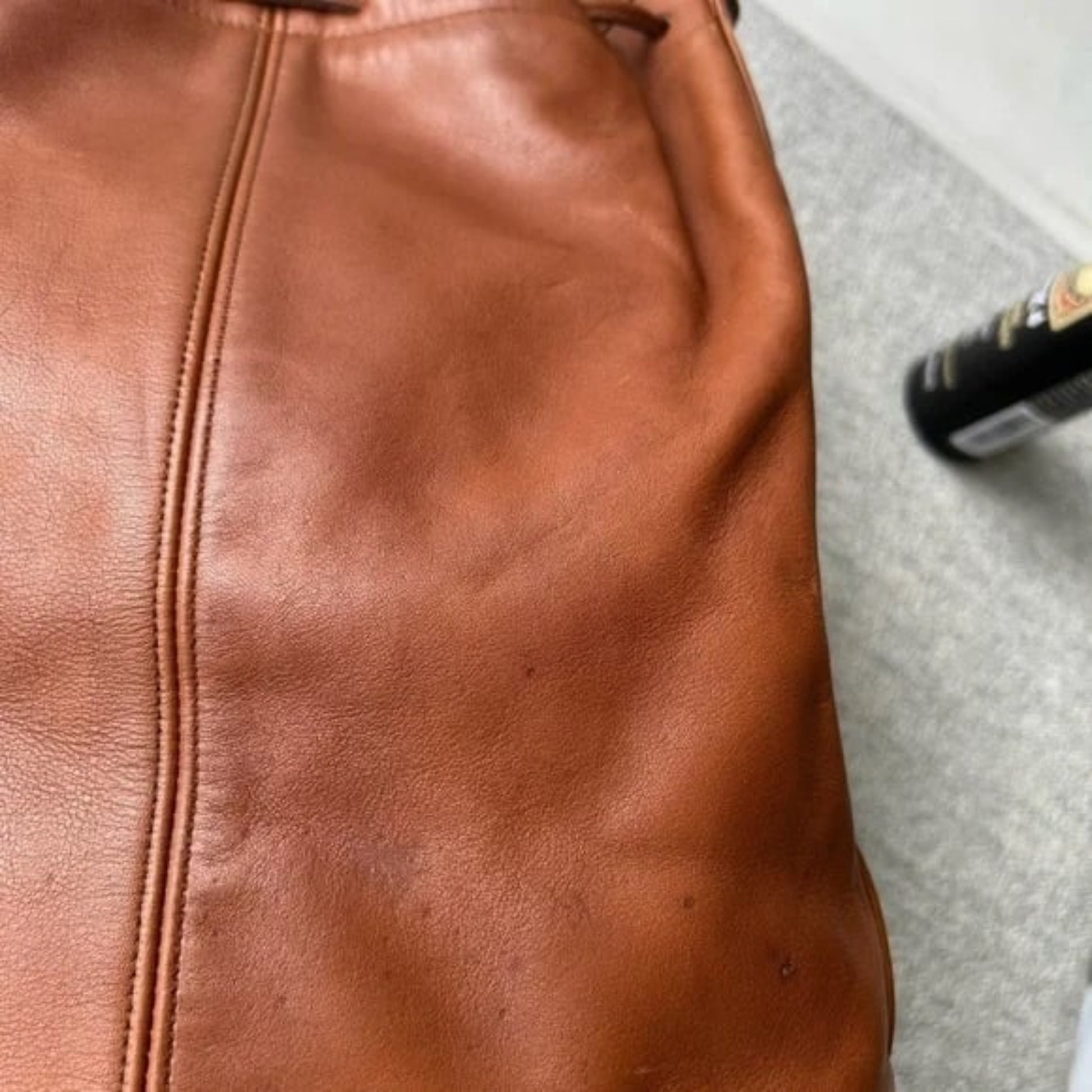 No smells. This bag has some mole scars. Does not take away from bags beauty. Buttery soft leather. Inside is clean.