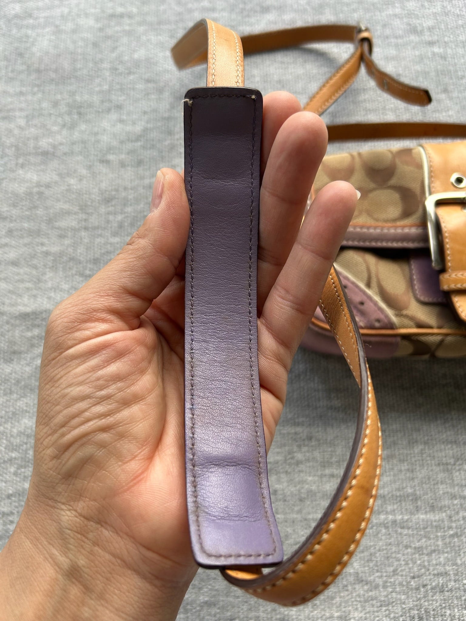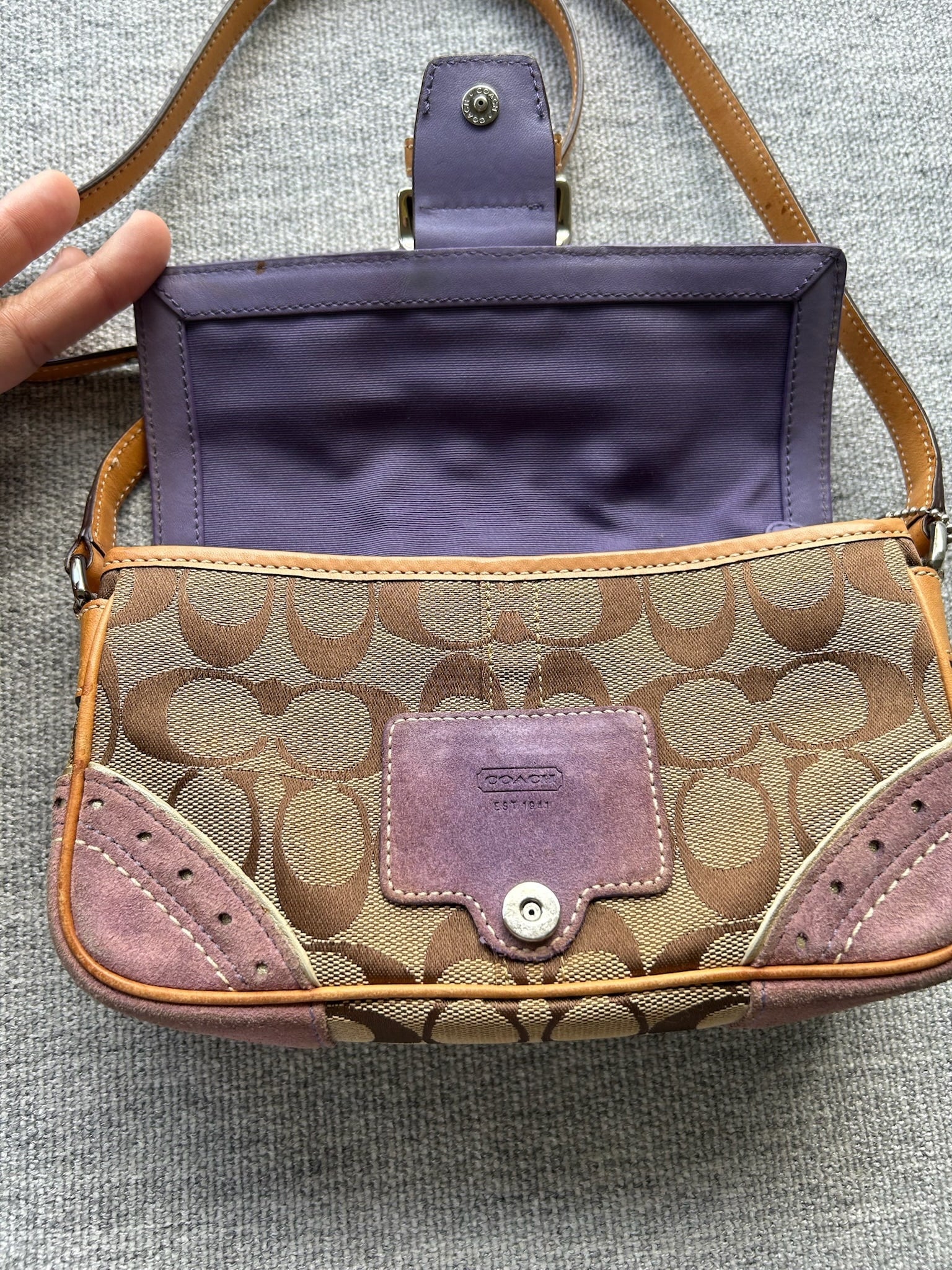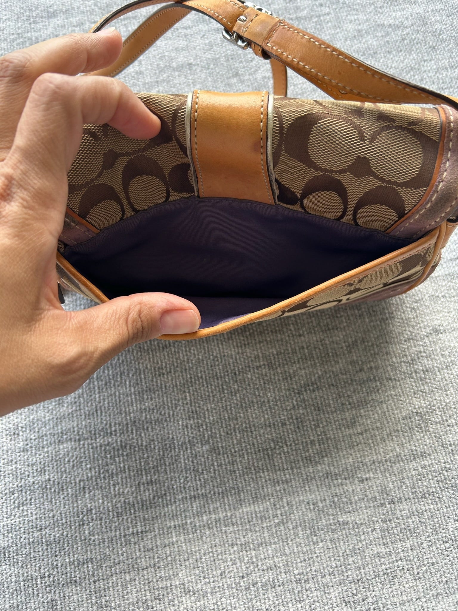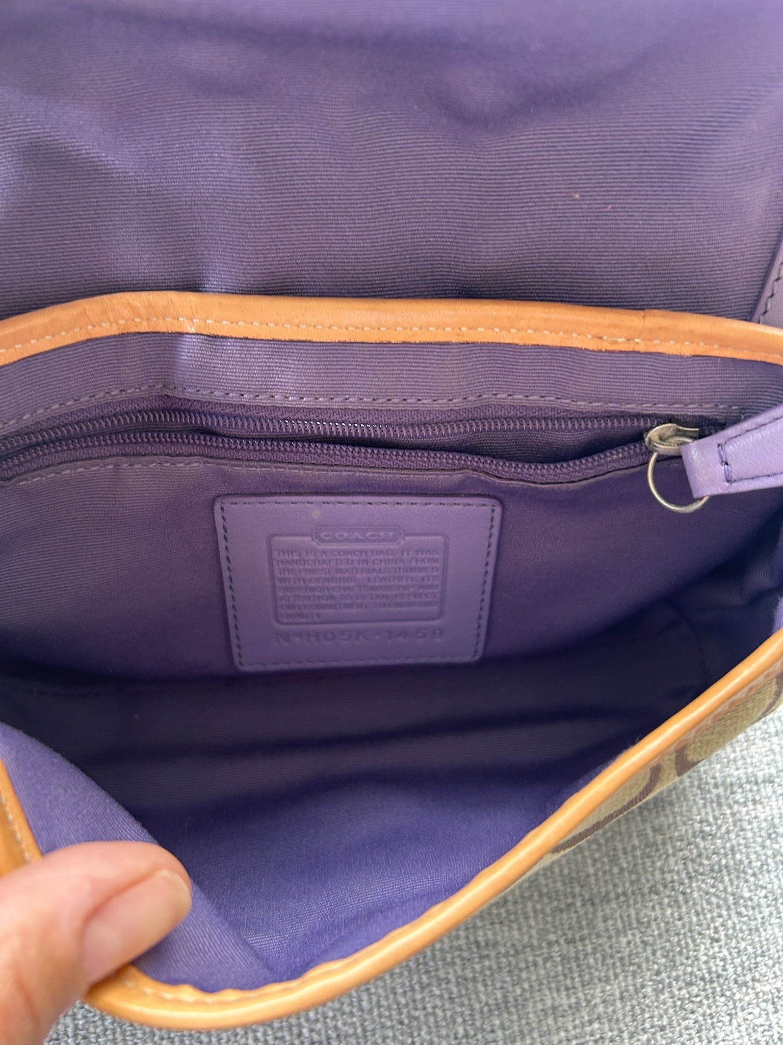 Coach Brown Tan and Purple Signature Crossbody Bag