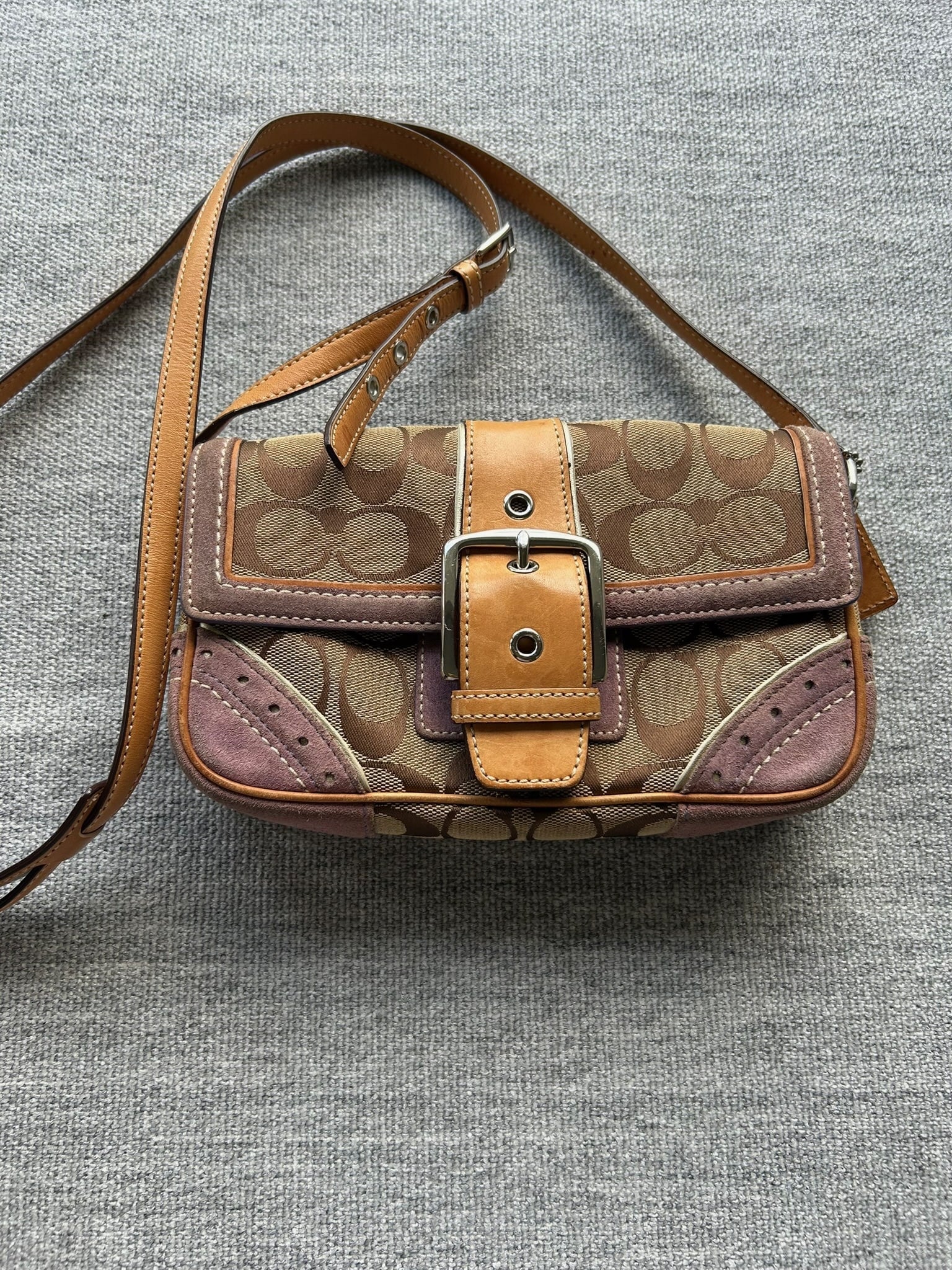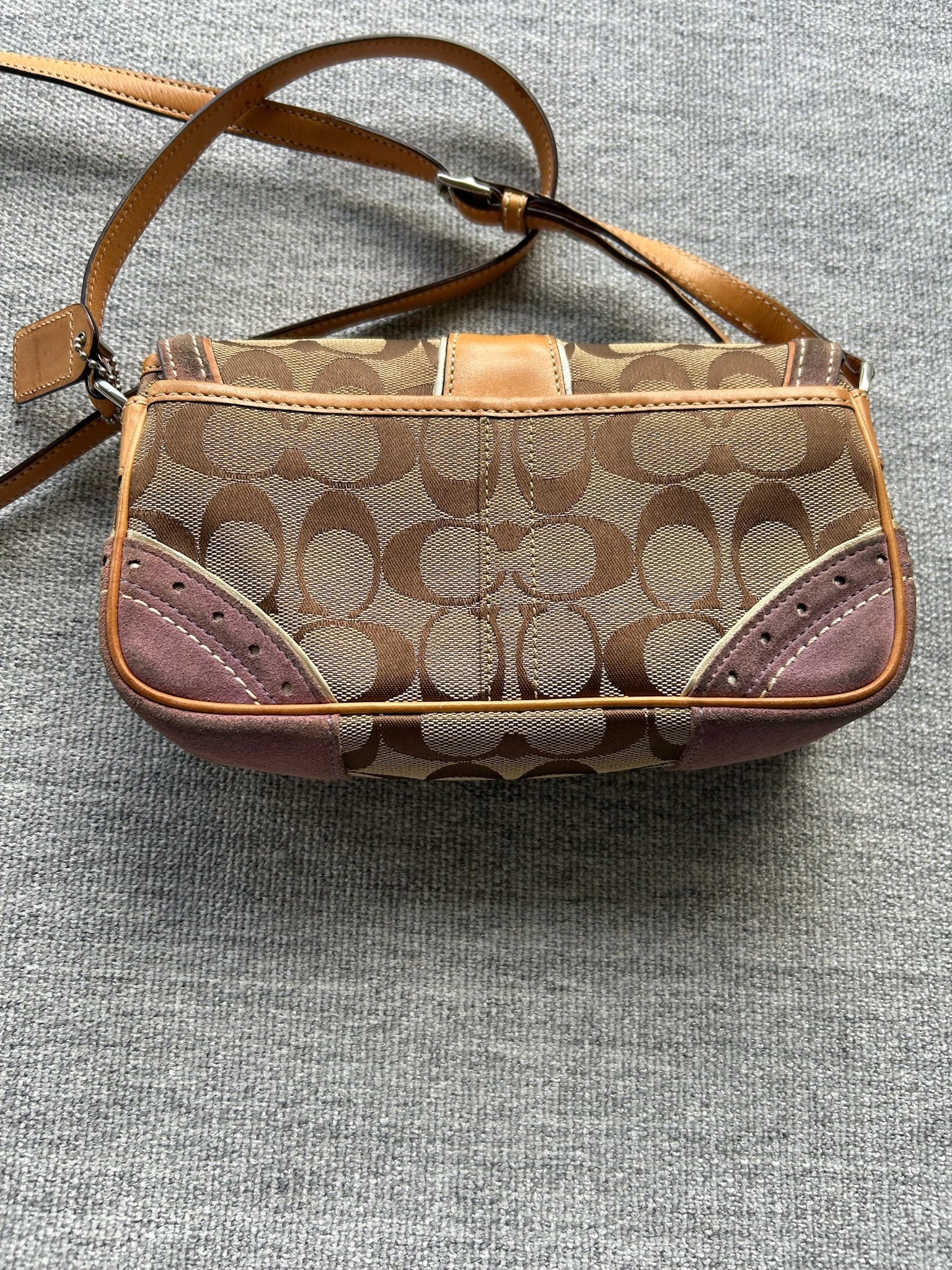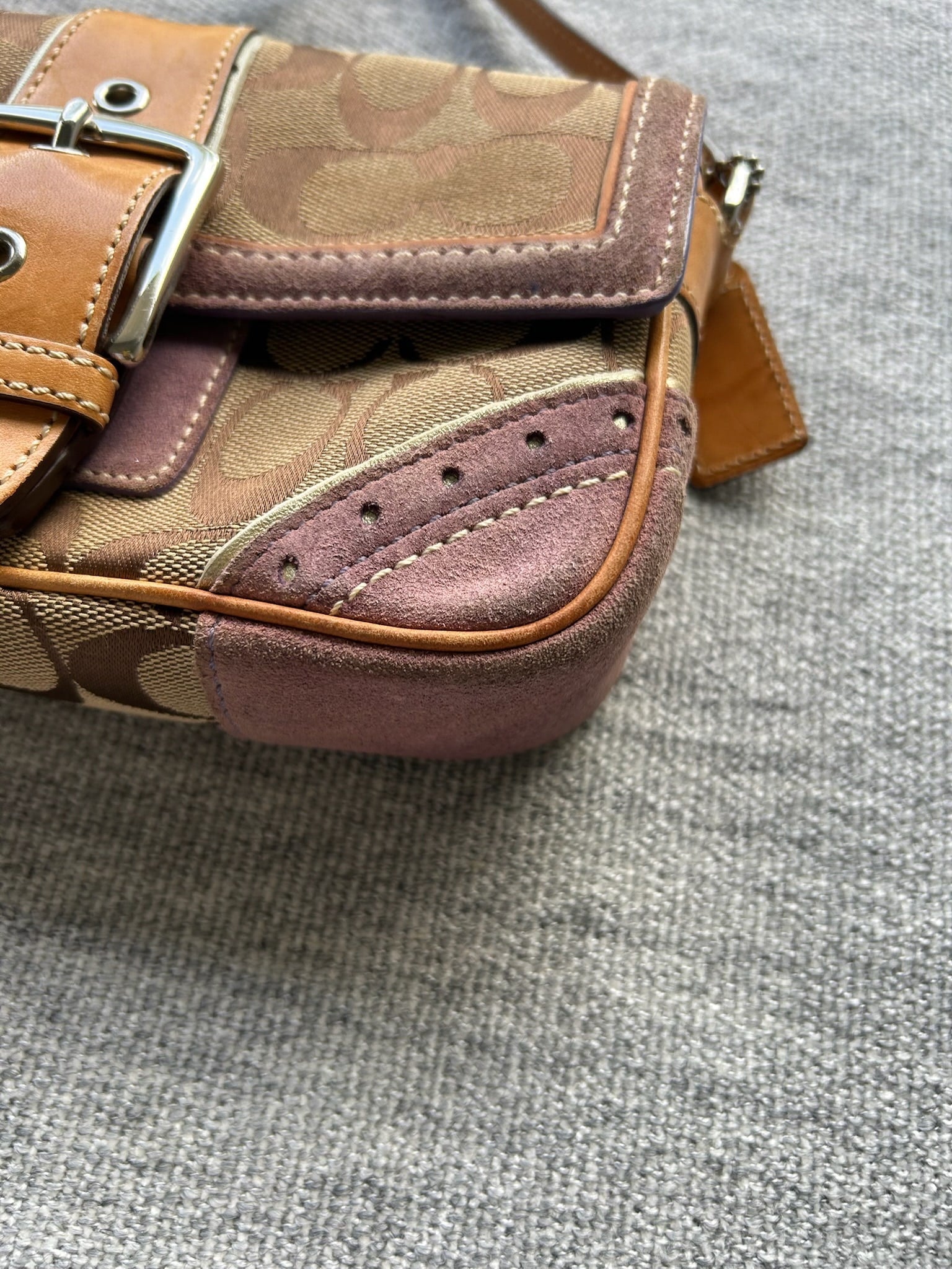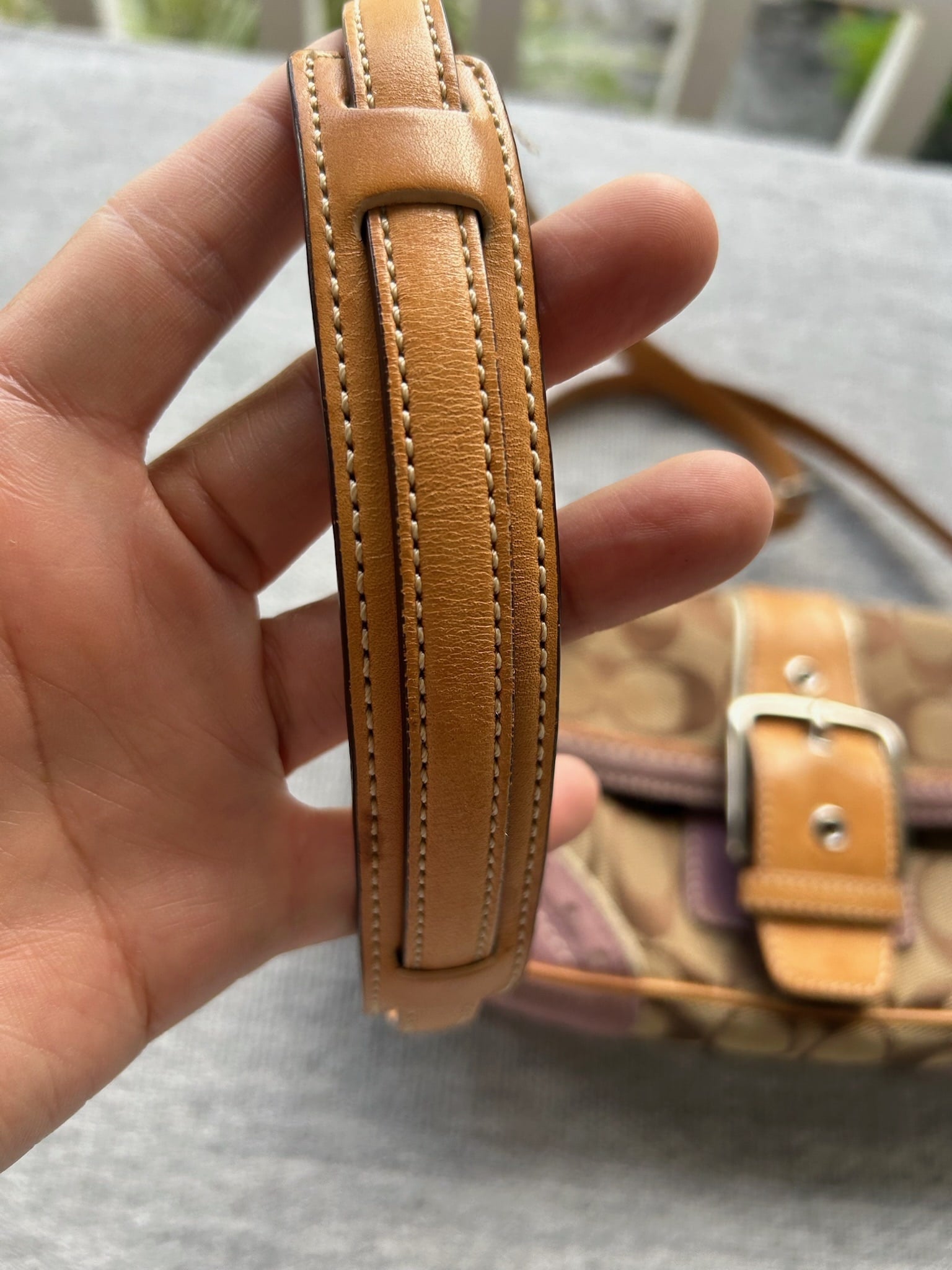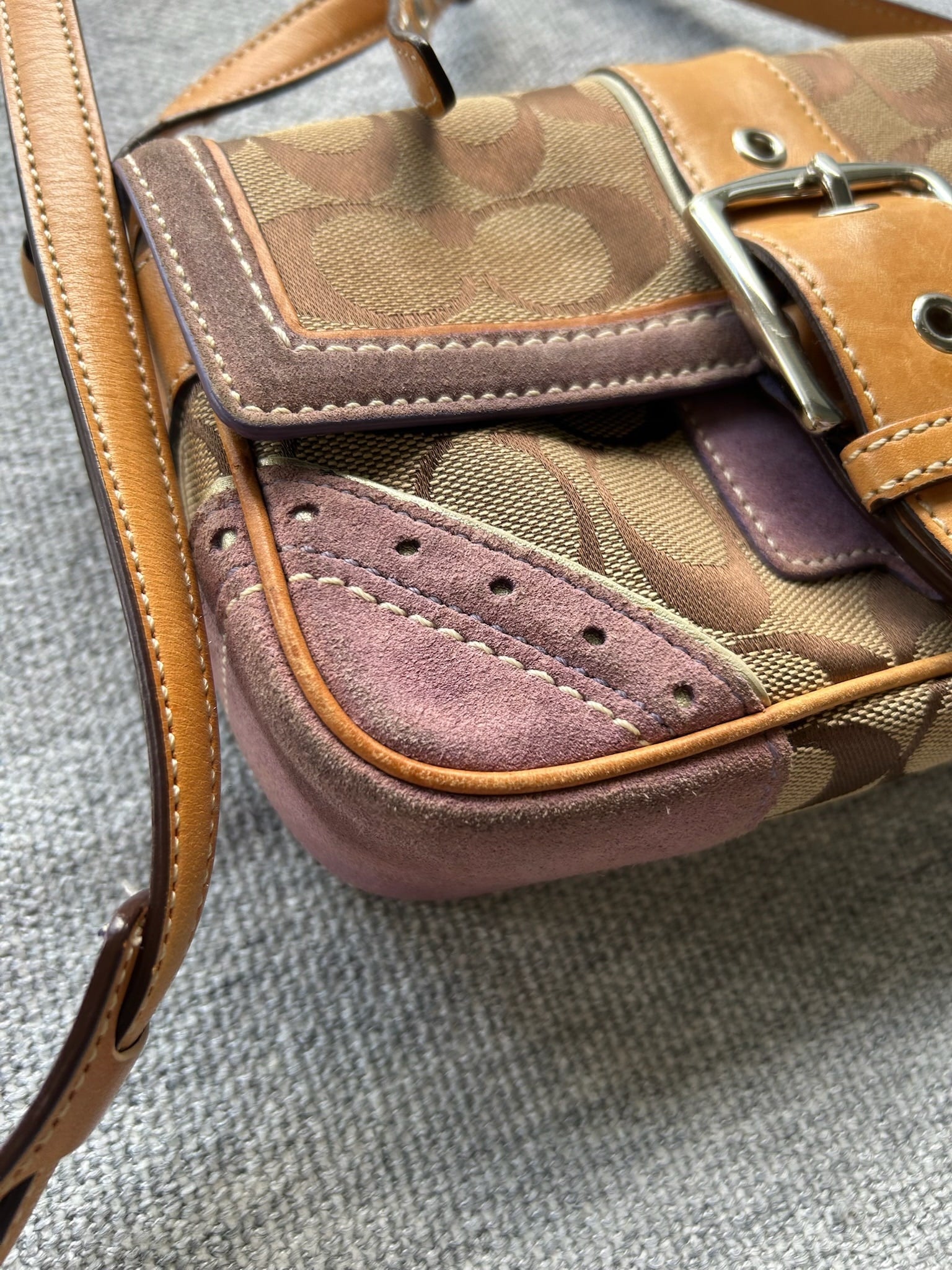Coach Brown Tan and Purple Signature Crossbody Bag