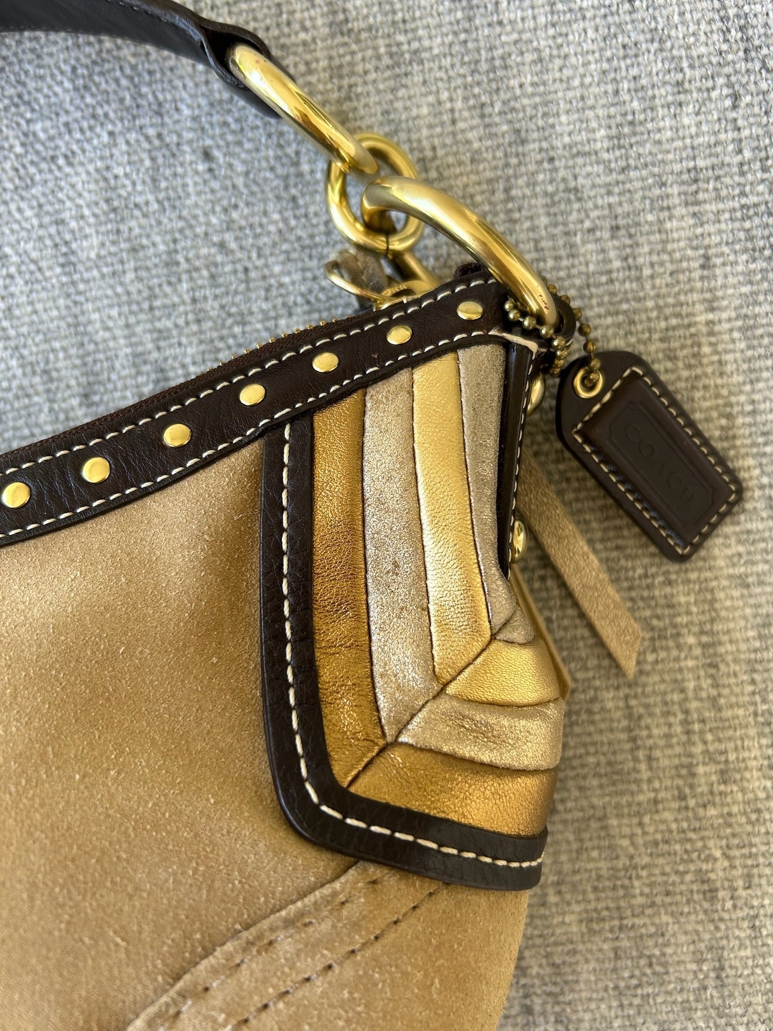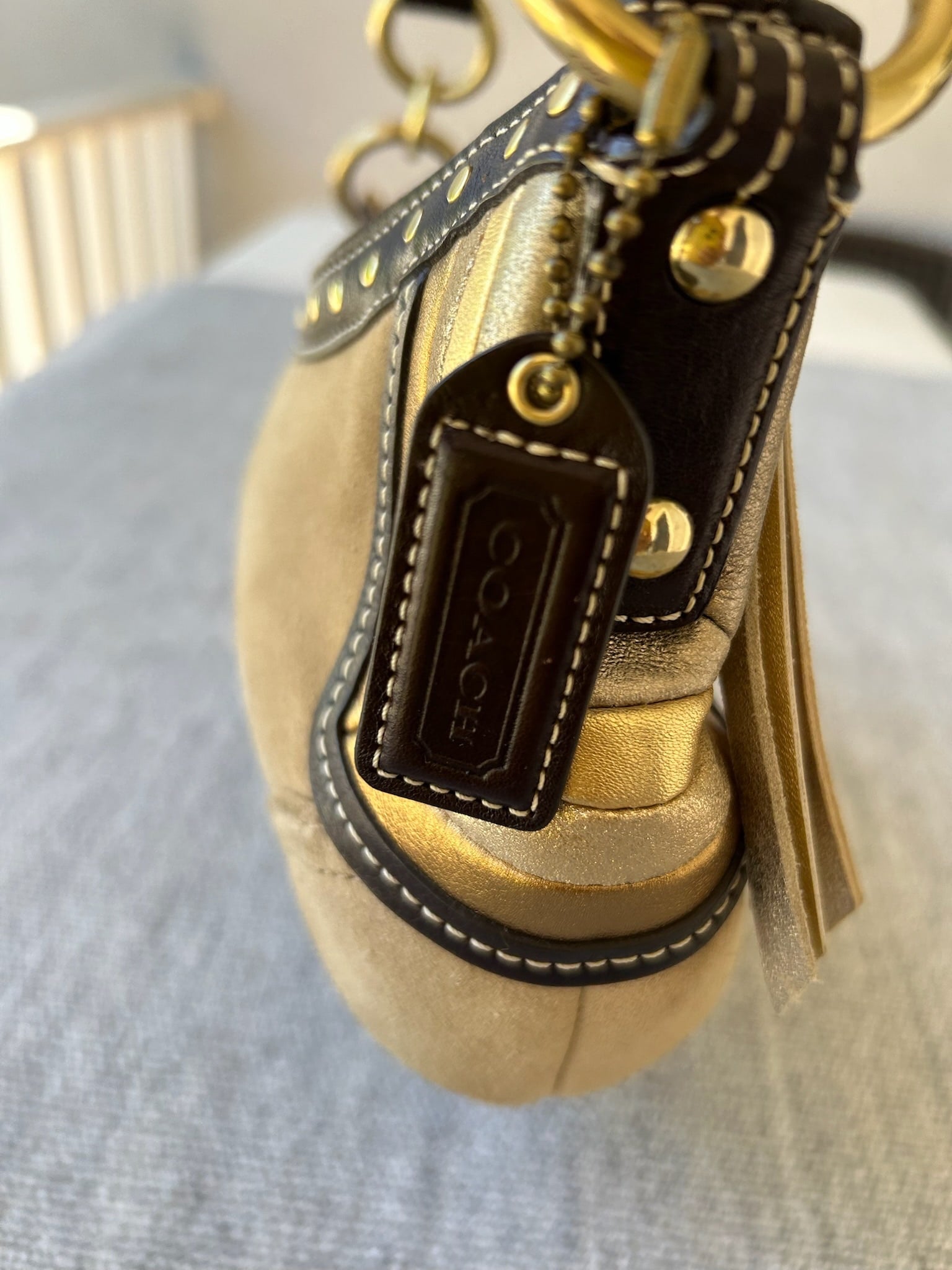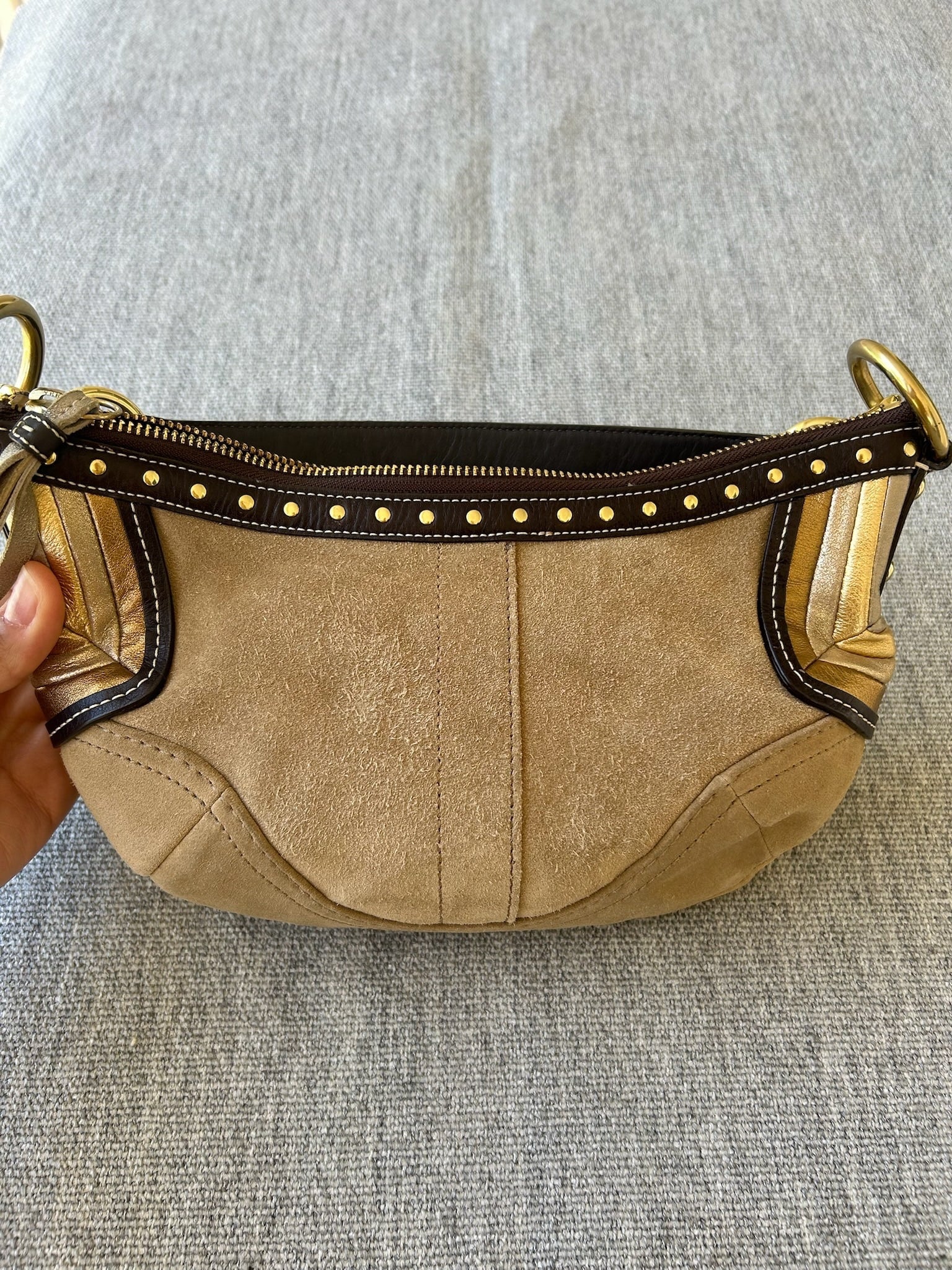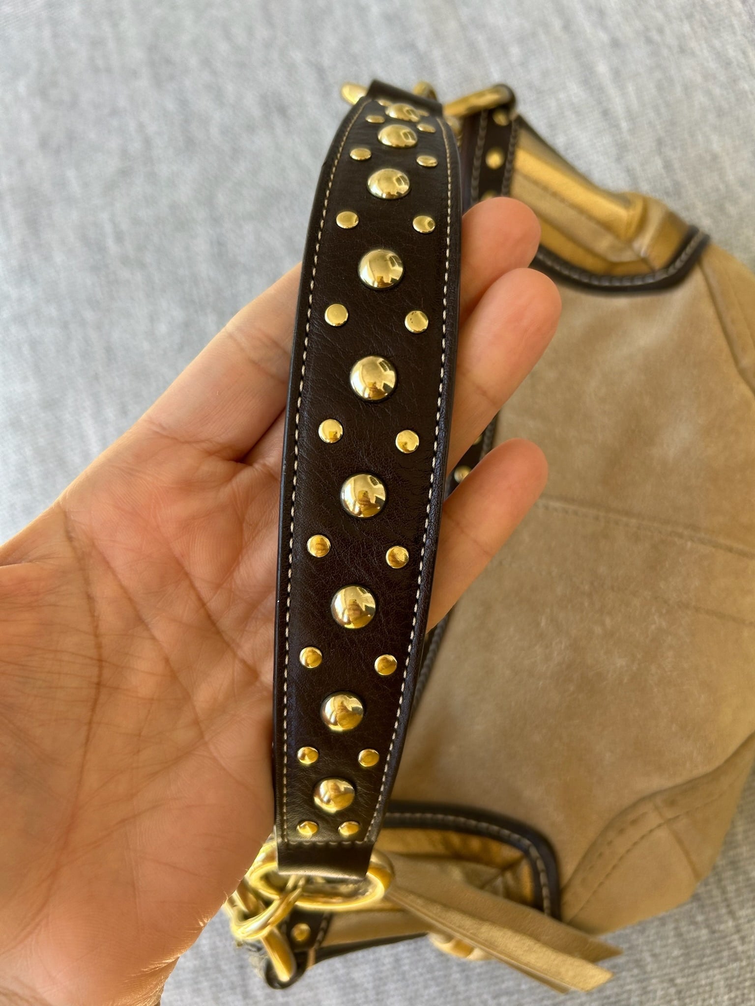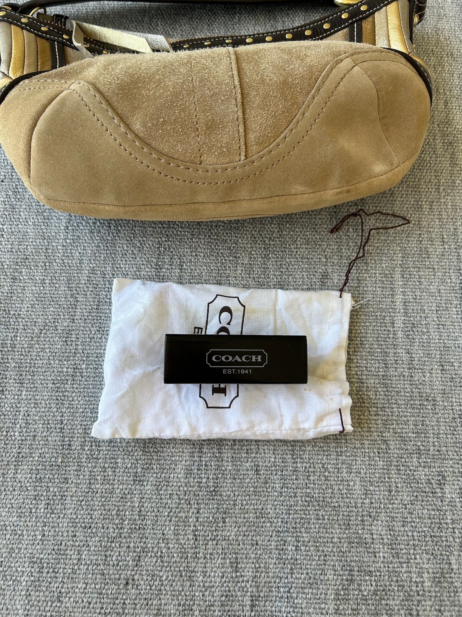 This item is in good used condition with minor signs of wear consistent with its age. Any notable flaws will be detailed in this description, and any additional call outs if any, can be seen in the provided photos. Please review all images carefully. Small amounts of color loss present on one side, see pics. Suede has been cleaned, bag in good condition. No smells.