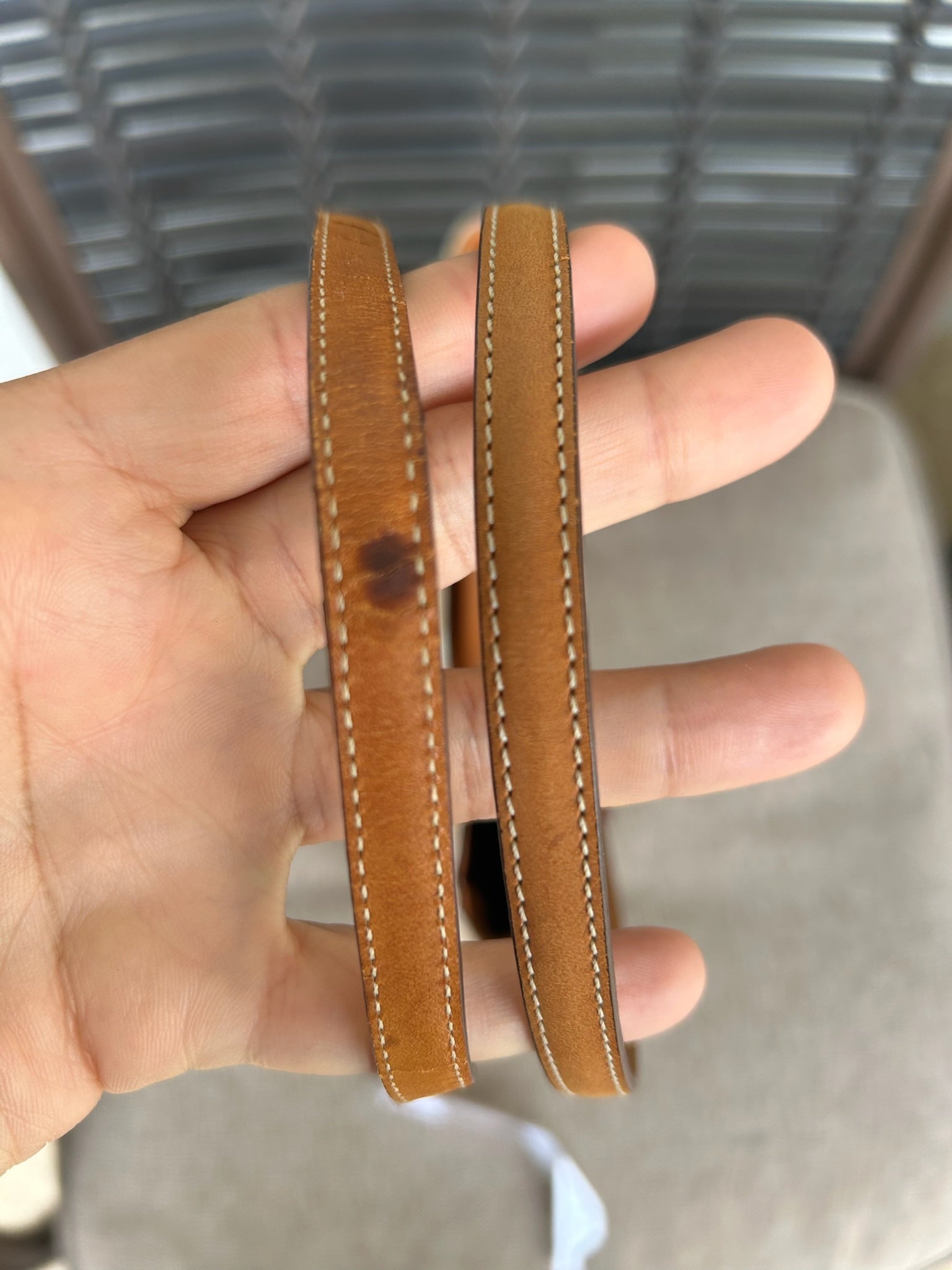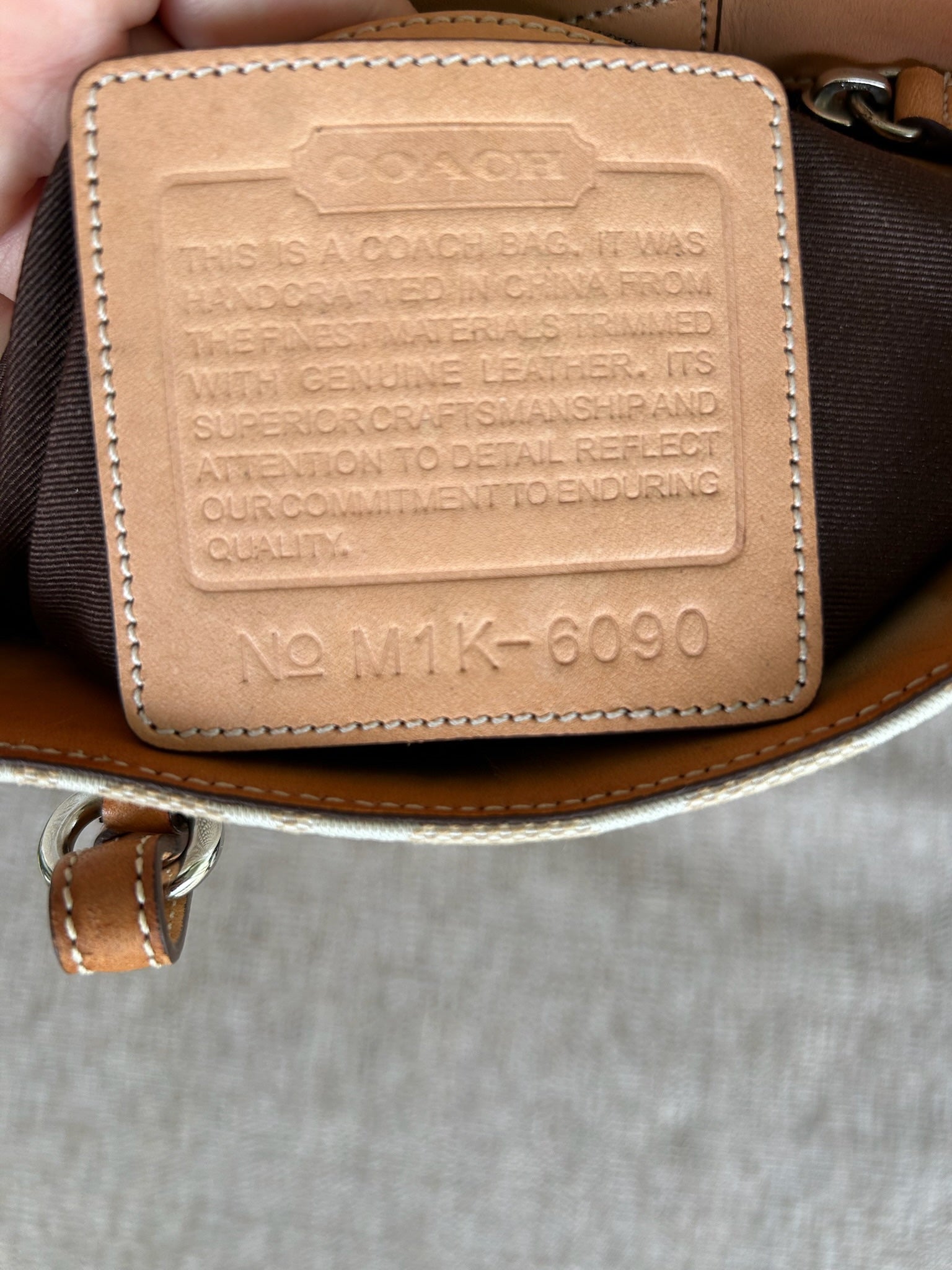 There are cracks in the leather. CC design is a peach color, inside is clean. Item is vintage and has standard wear from use.