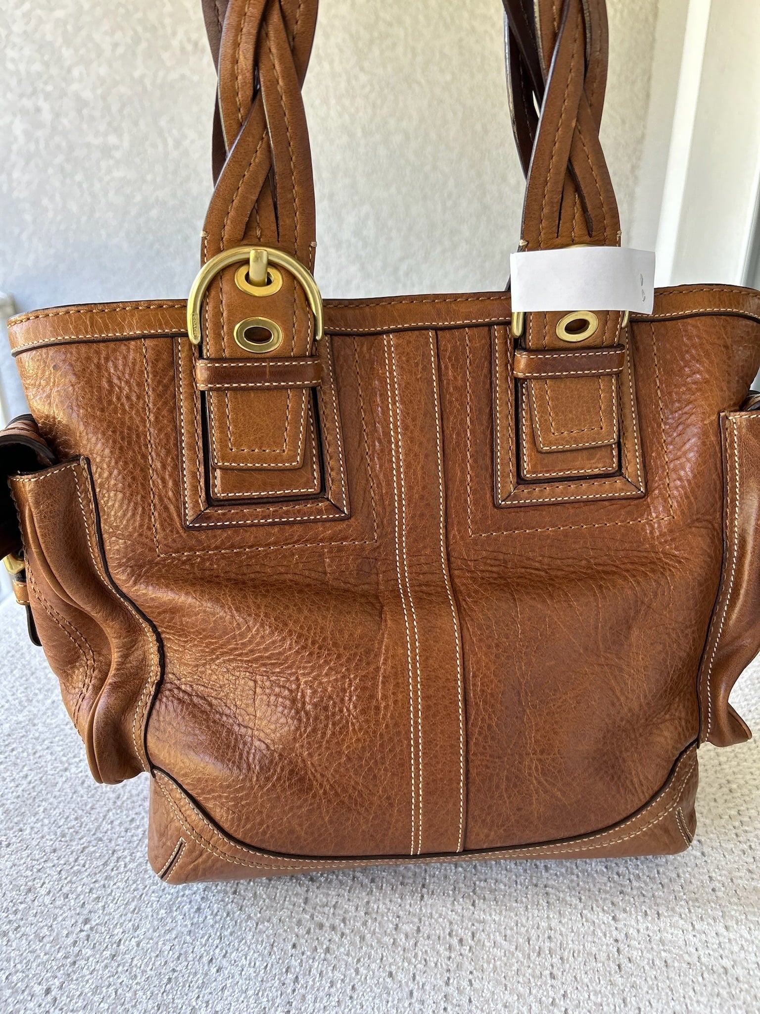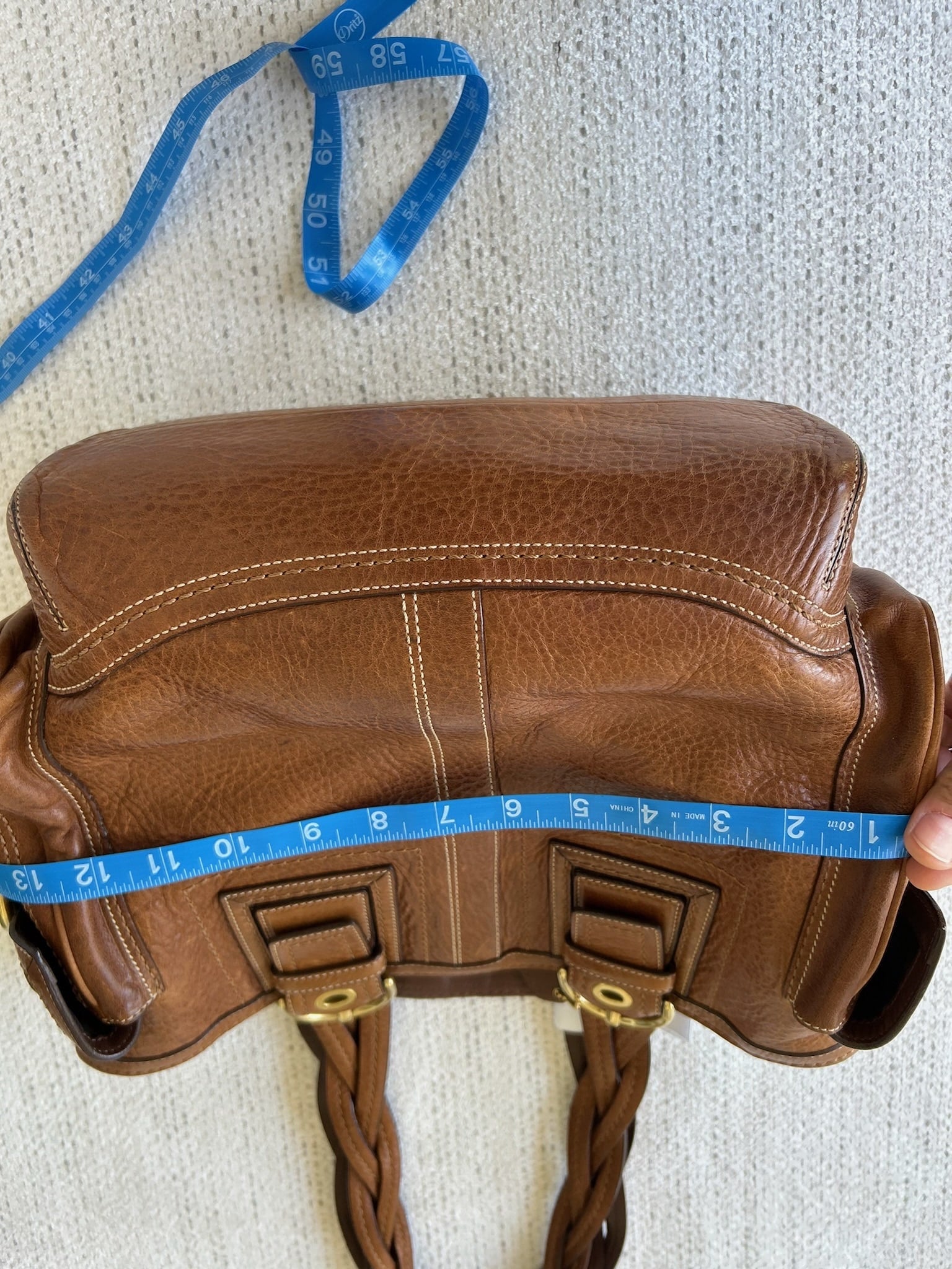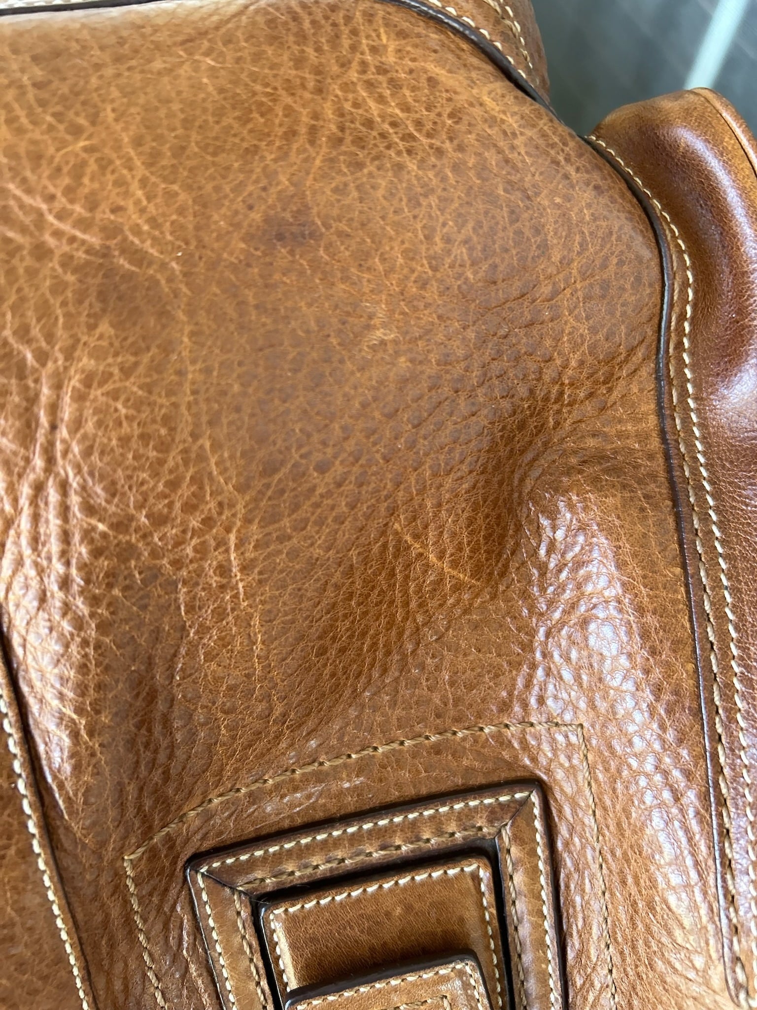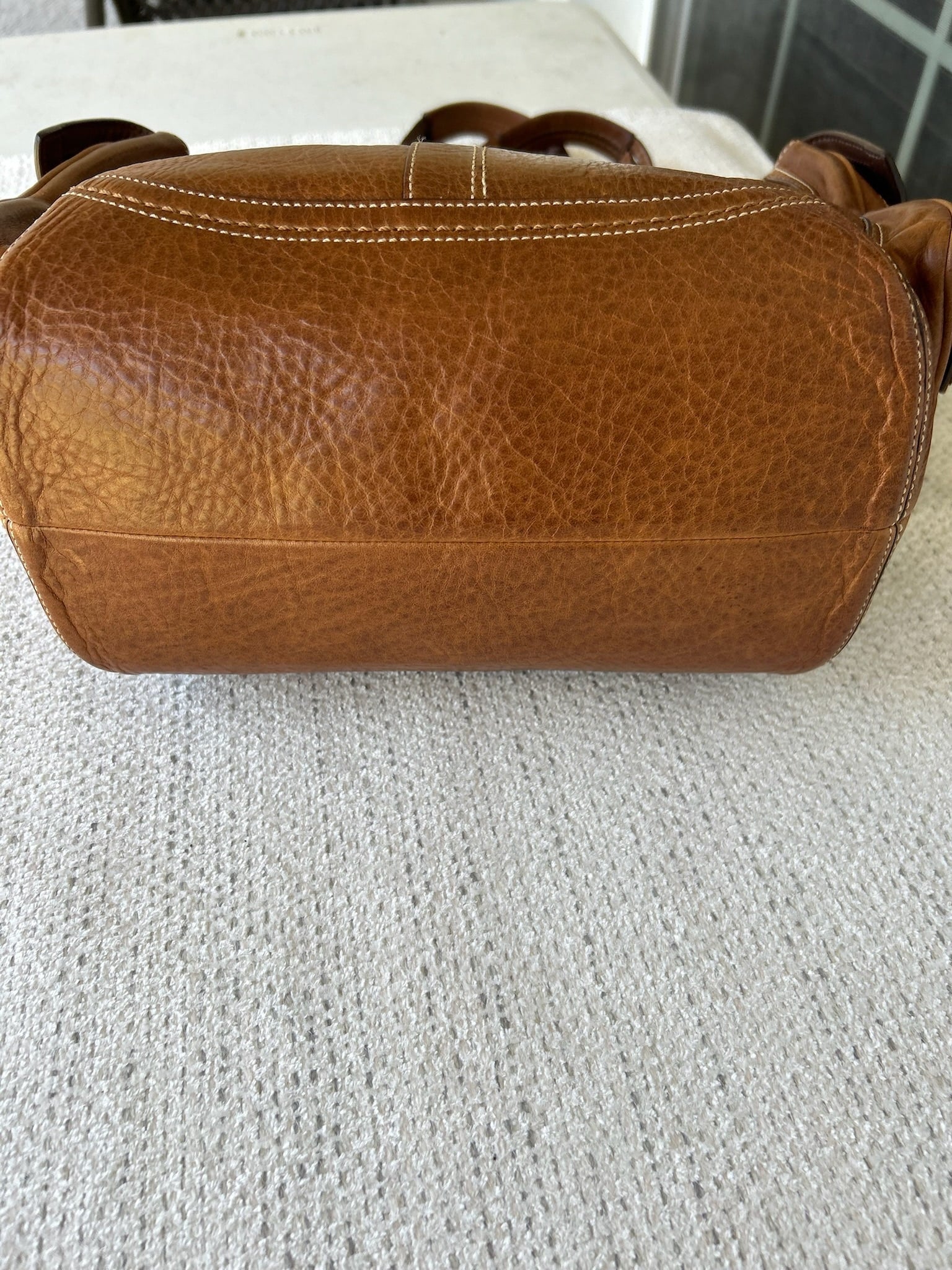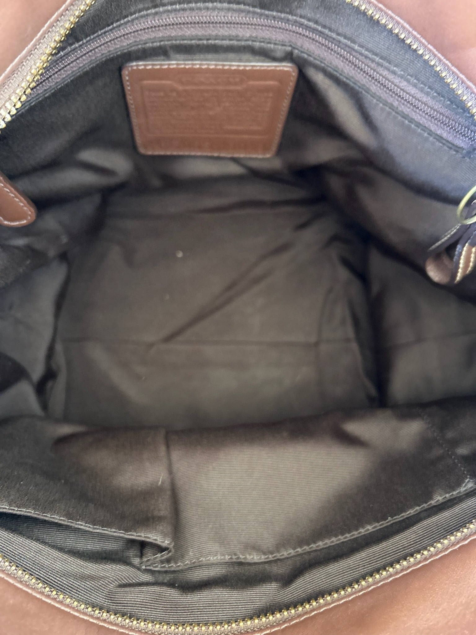This item is in good used condition with minor signs of wear consistent with its age. Any notable flaws will be detailed in this description, and any additional call outs if any, can be seen in the provided photos. Please review all images carefully. Leather has scratches, small spot, inside is clean.