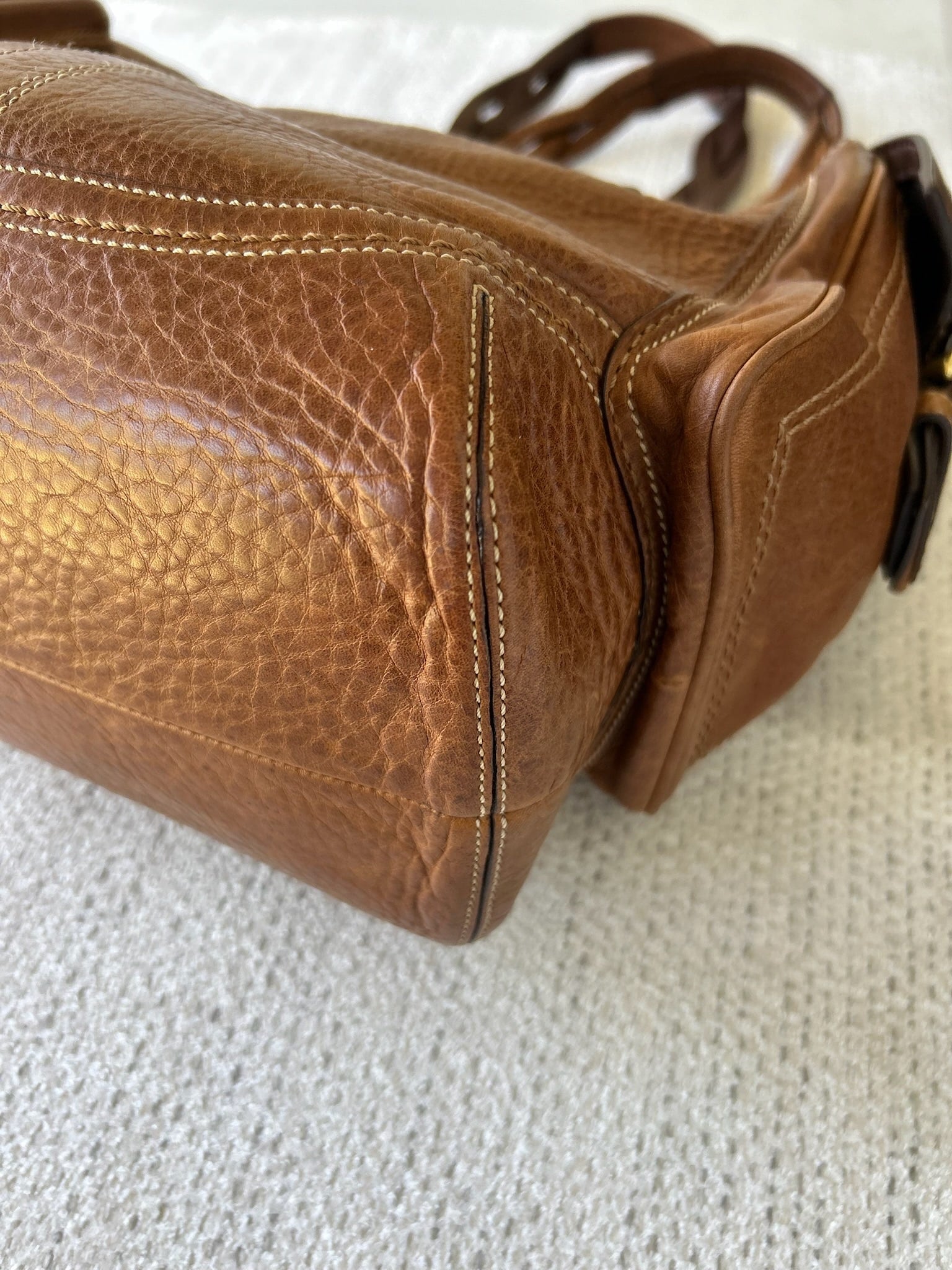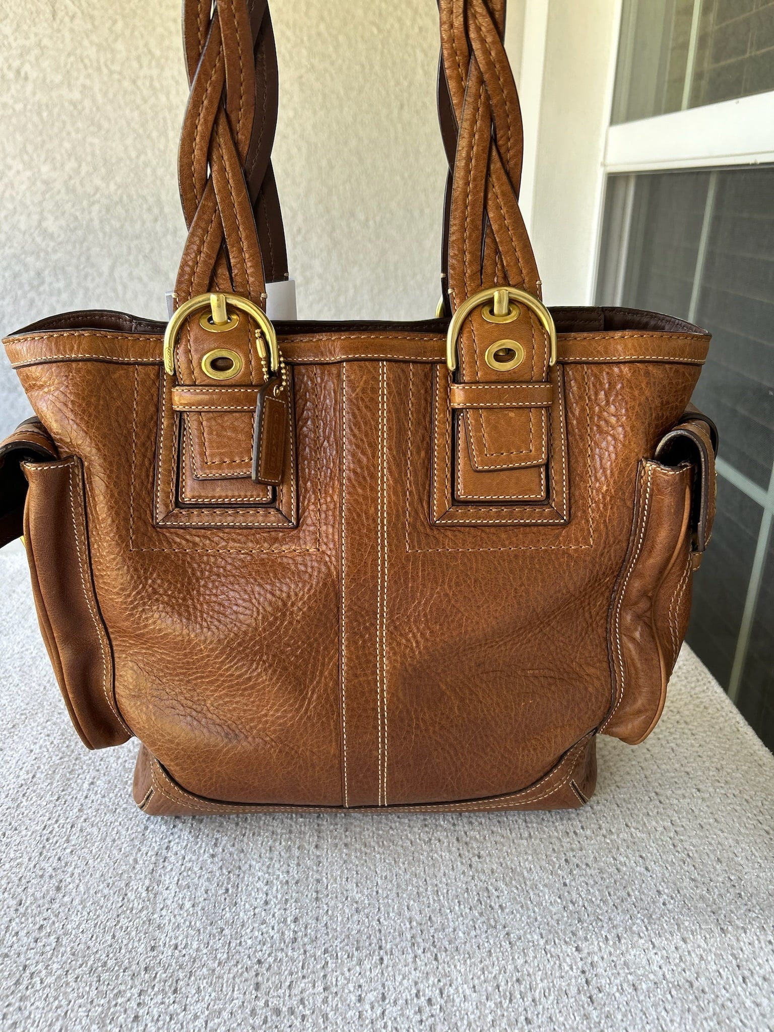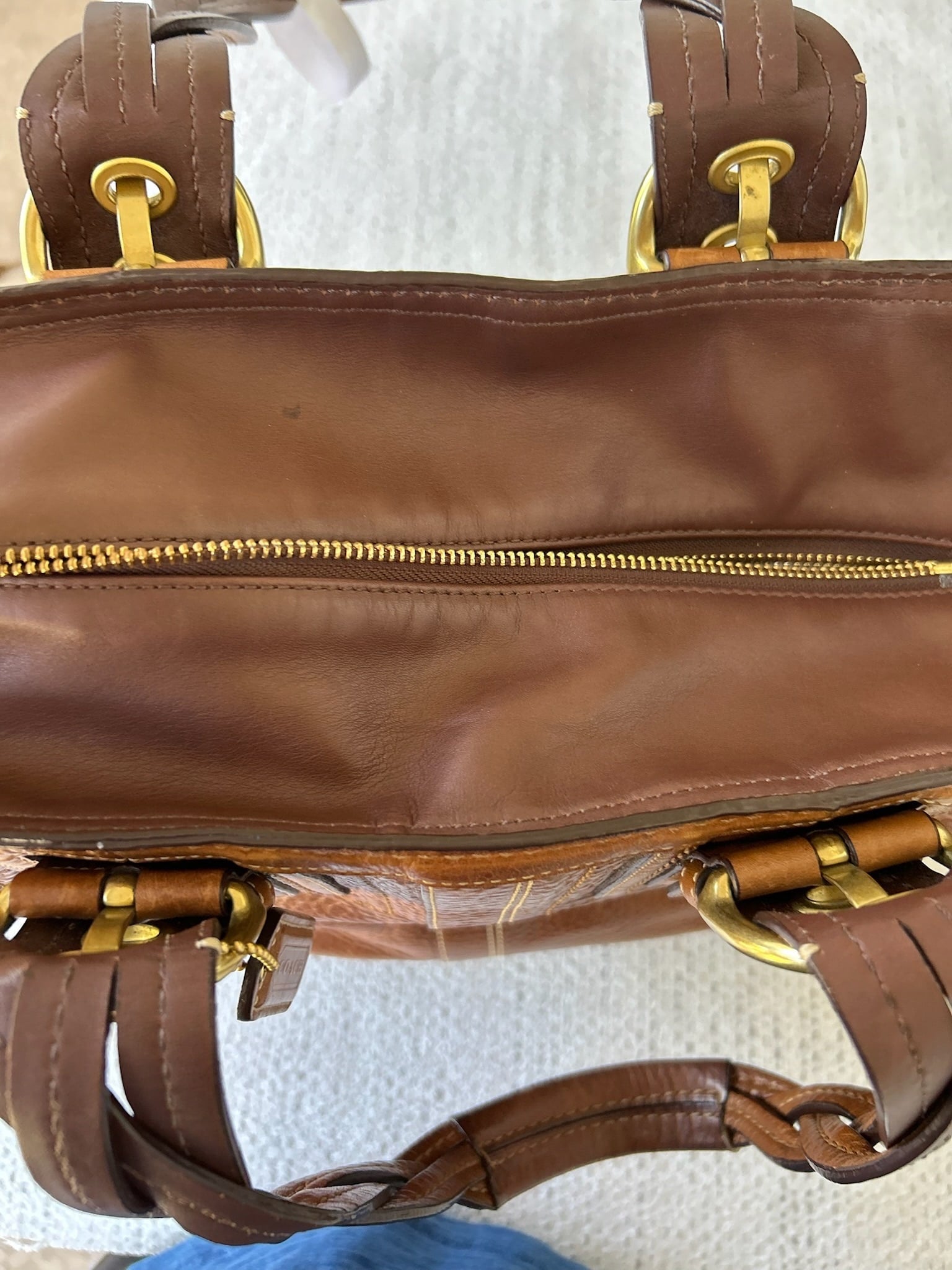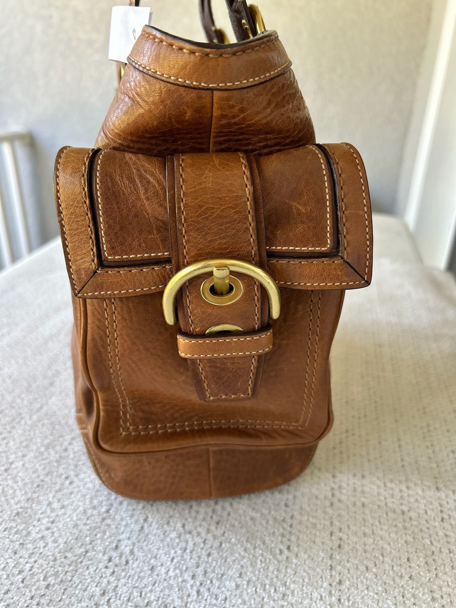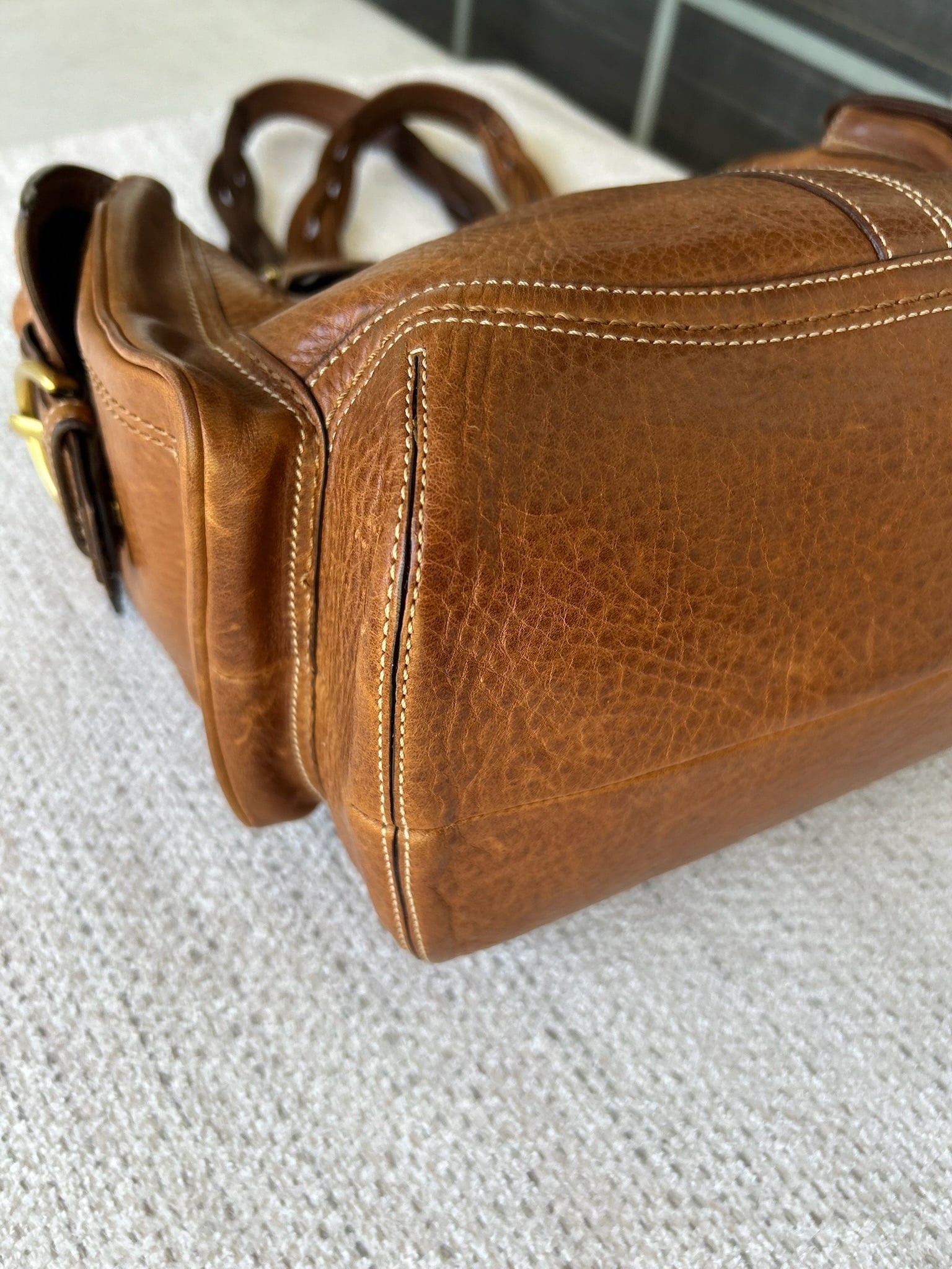 This item is in good used condition with minor signs of wear consistent with its age. Any notable flaws will be detailed in this description, and any additional call outs if any, can be seen in the provided photos. Please review all images carefully. Leather has scratches, small spot, inside is clean.