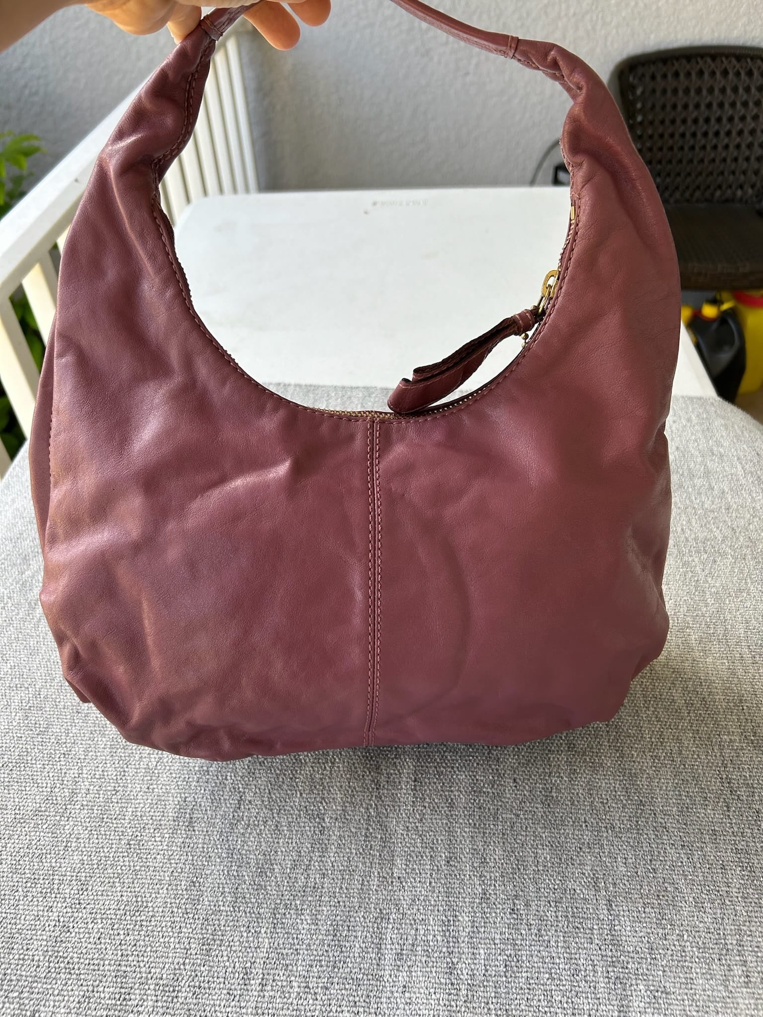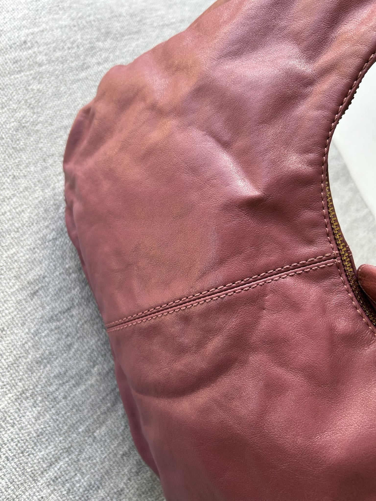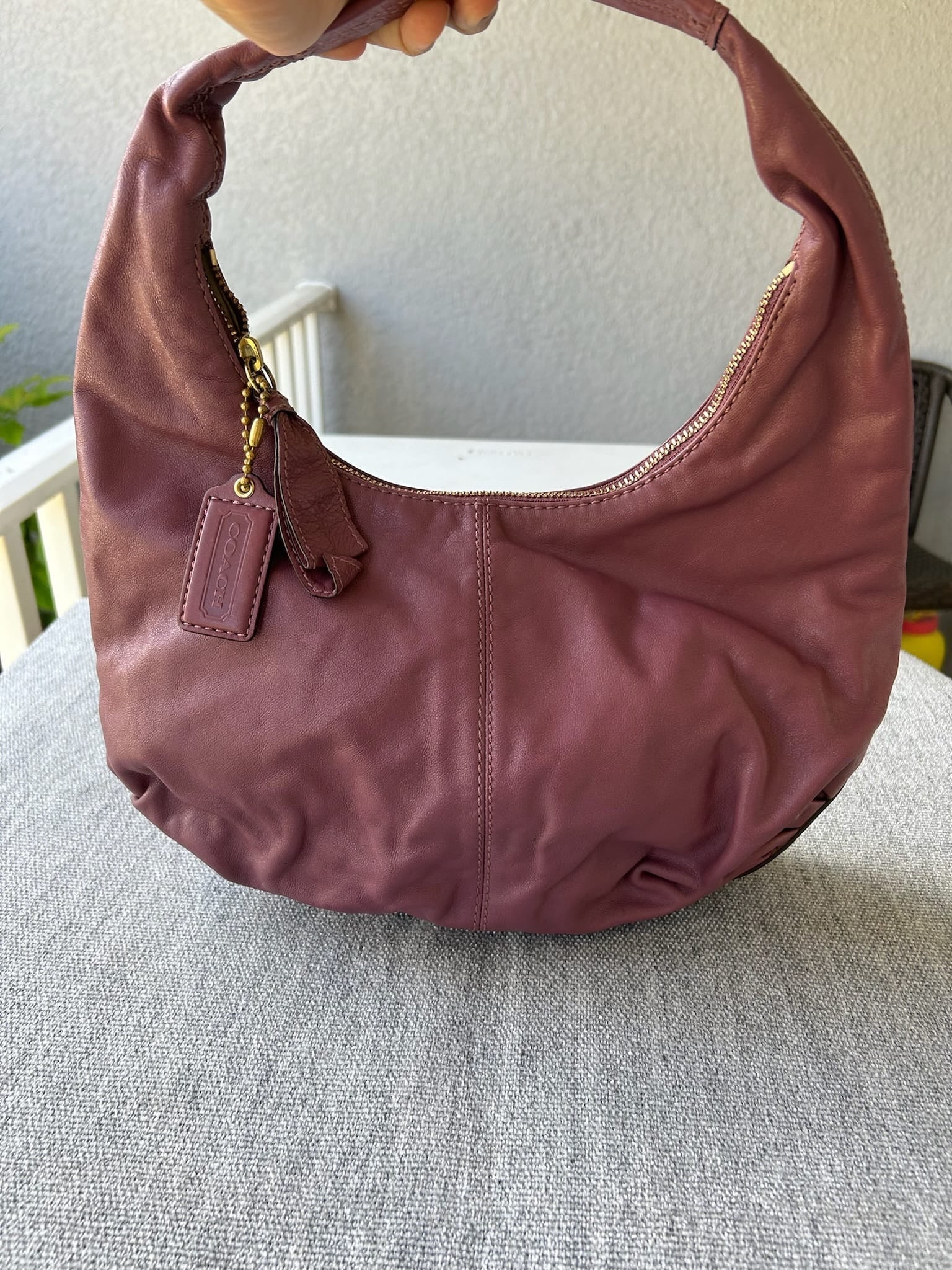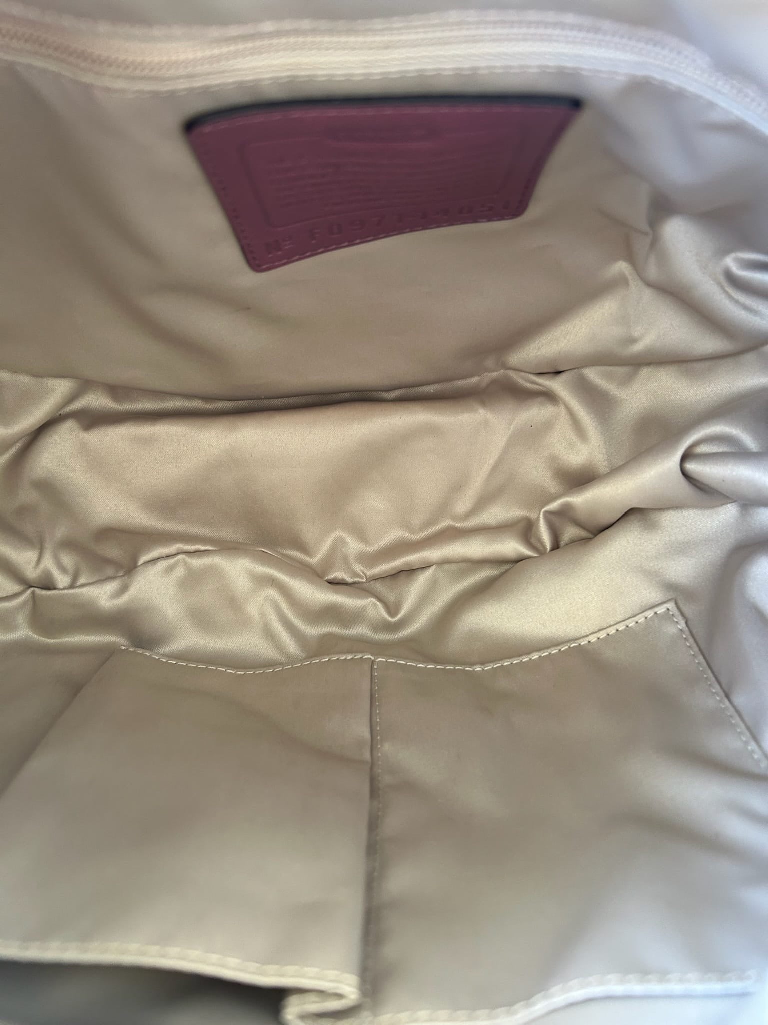 This Coach bag in a beautiful pink leather is perfect for any occasion. Add a touch of sophistication to your outfit with this must-have accessory. This item is in good used condition with minor signs of wear consistent with its age. Any notable flaws will be detailed in this description, and any additional call outs if any, can be seen in the provided photos. Please review all images carefully. Leather does have an imprint if a circle. This could be removed with massaged out with more conditioning. Leather is stiff and construction of bag is good. Inside is clean.