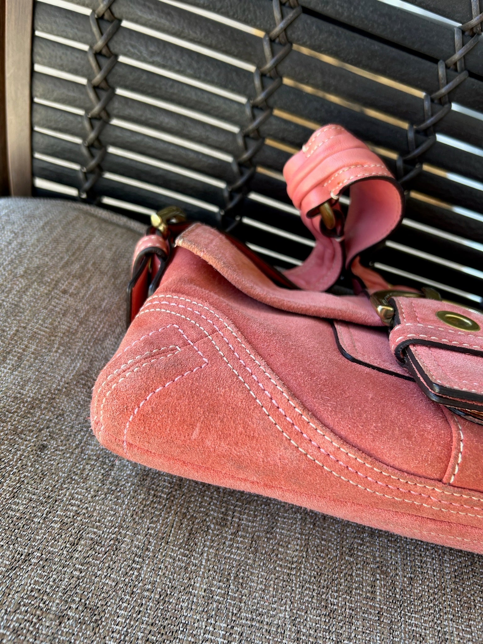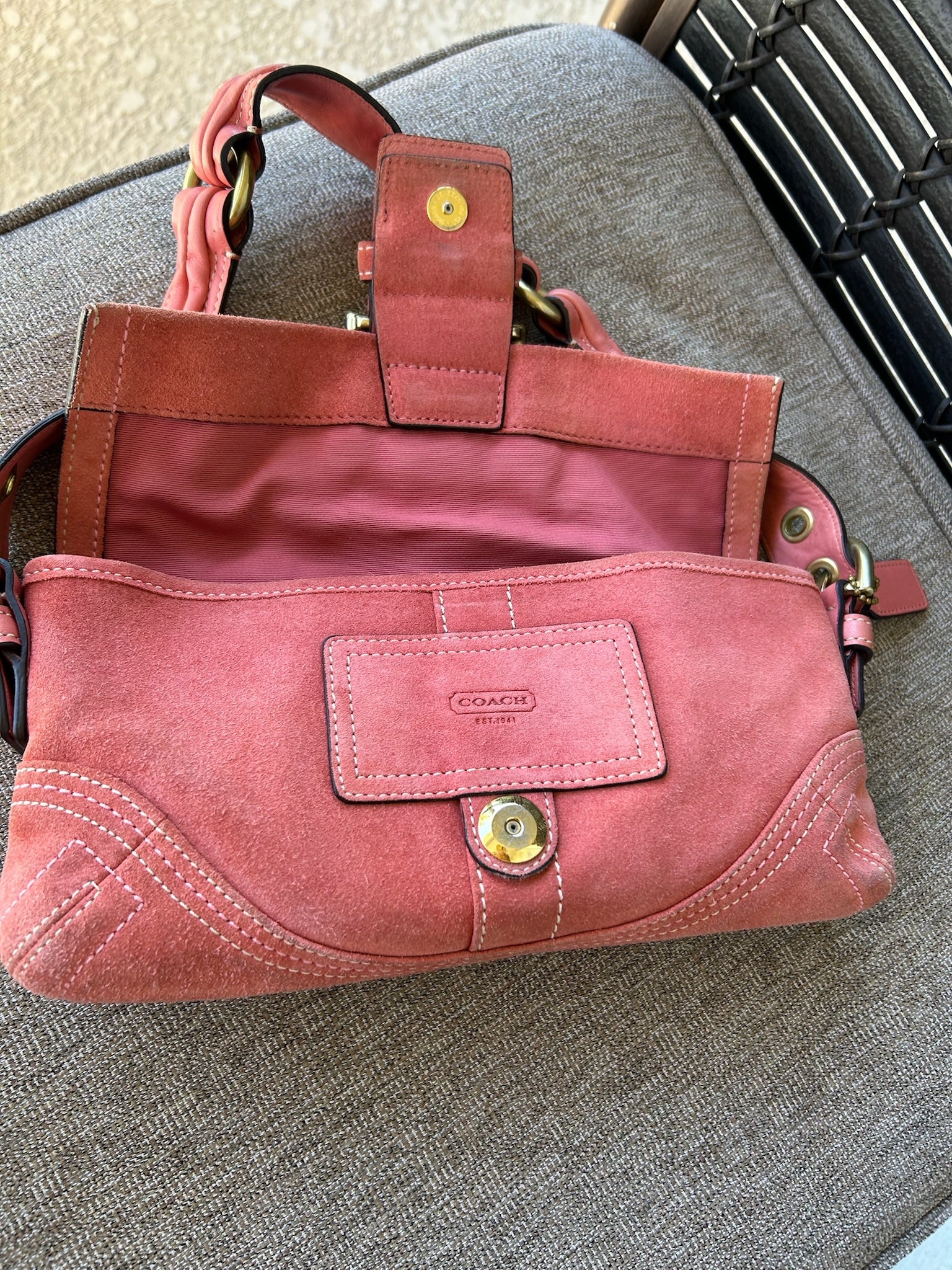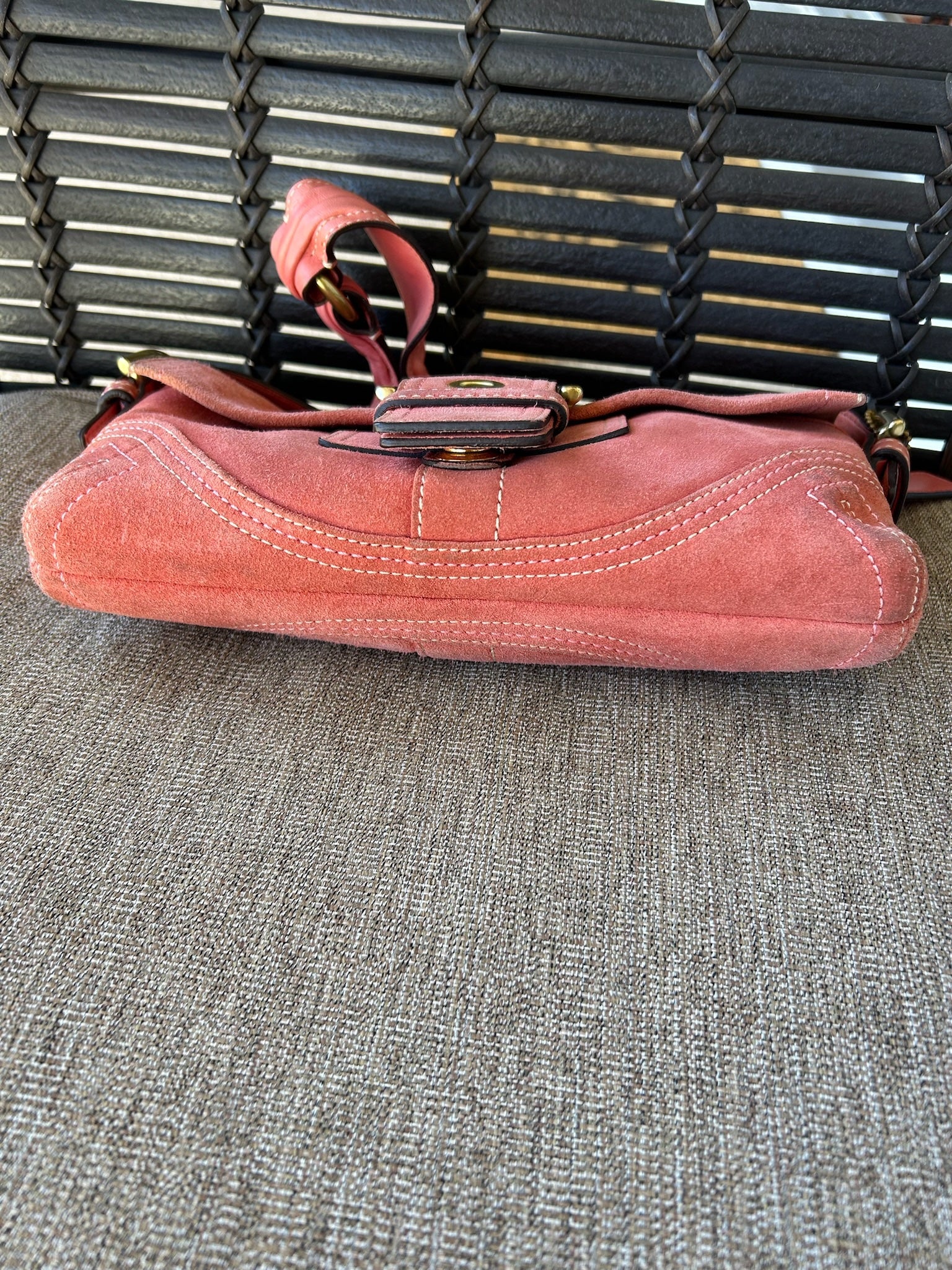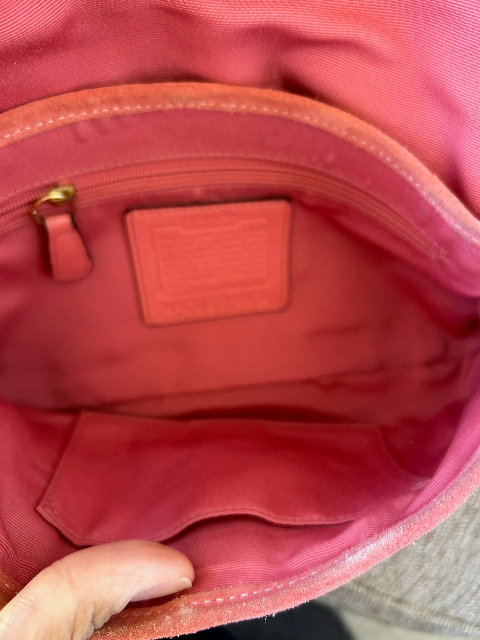 Coach hobo flap bag. This bag is previously loved, this bag has been cleaned with a suede cleaner and a suede brush. Staining still remains. Inside a bag is clean, review pictures.