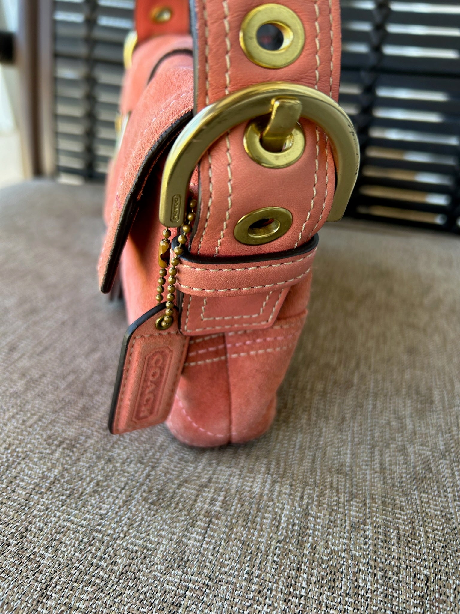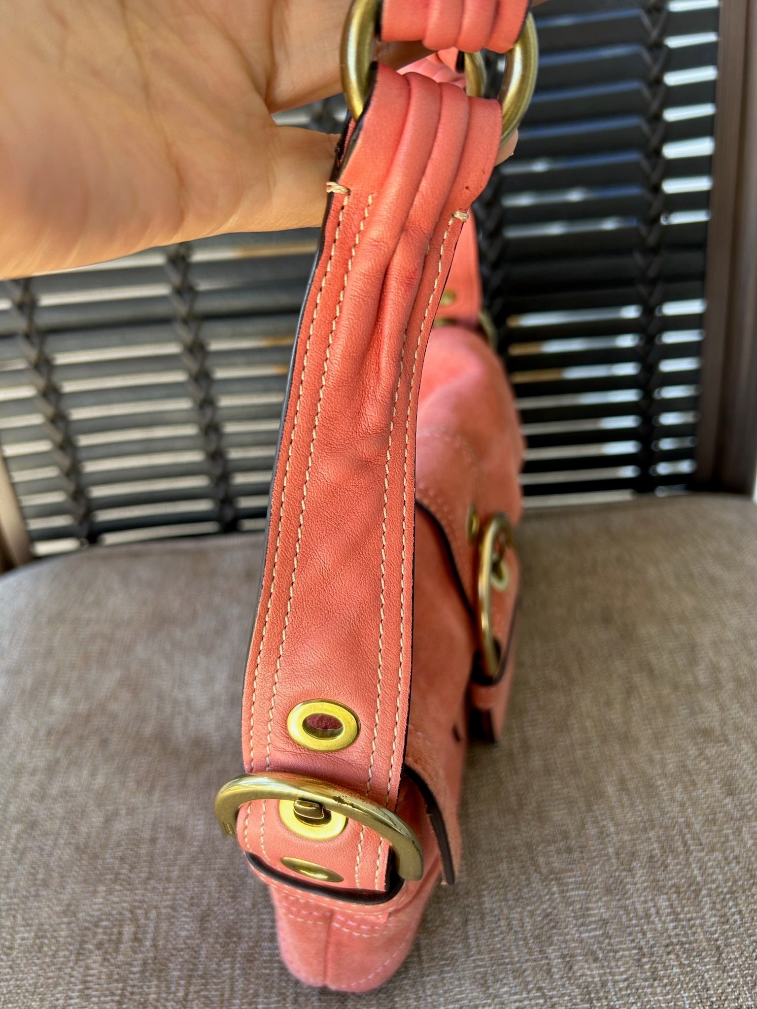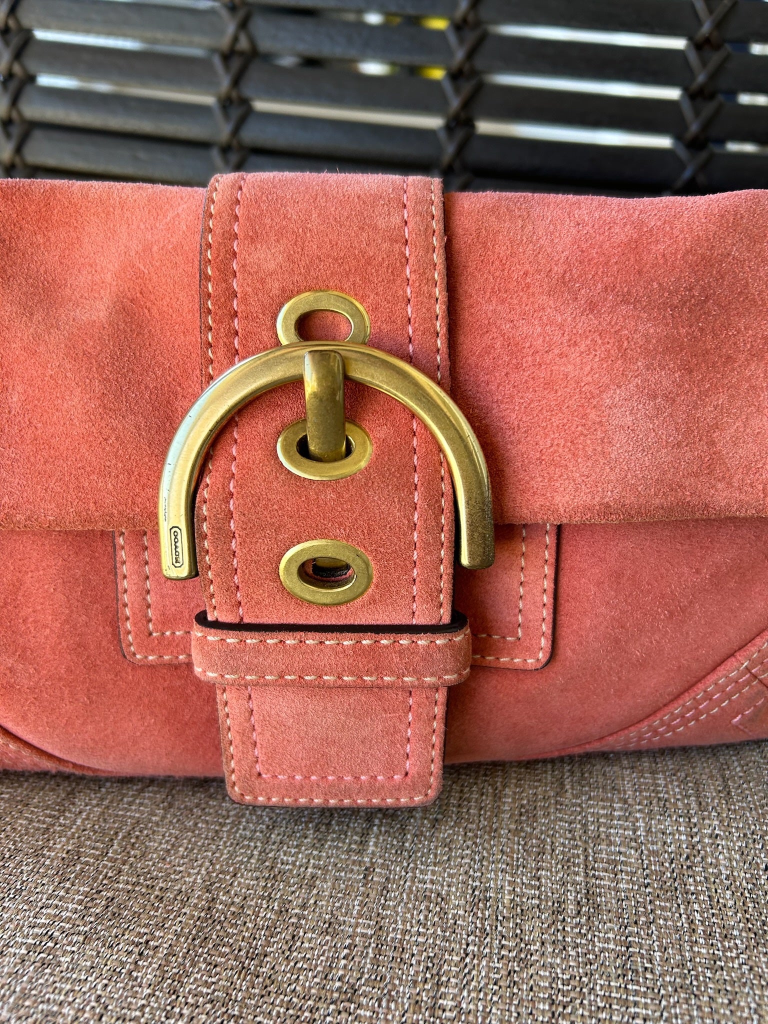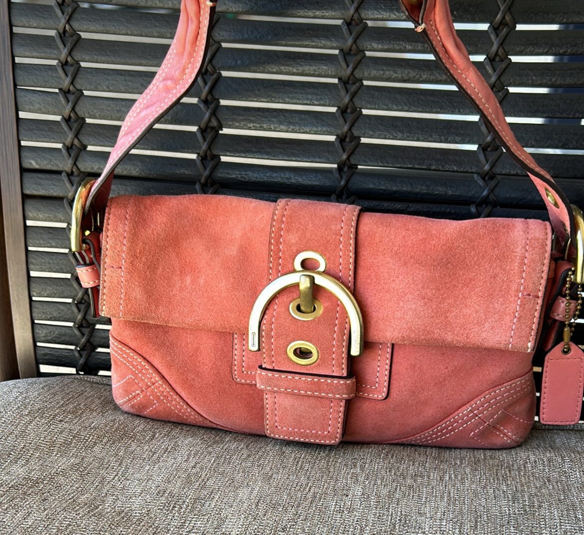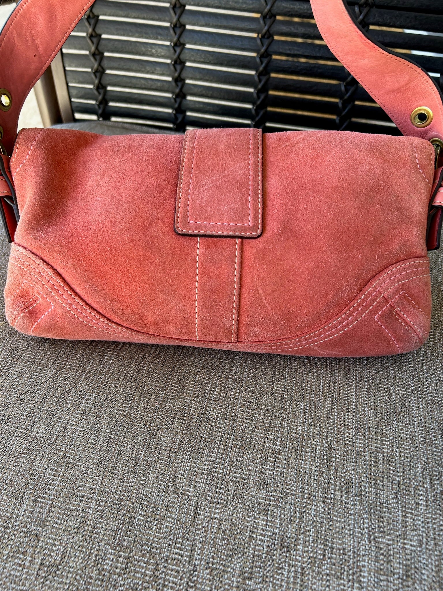 Coach hobo flap bag. This bag is previously loved, this bag has been cleaned with a suede cleaner and a suede brush. Staining still remains. Inside a bag is clean, review pictures.