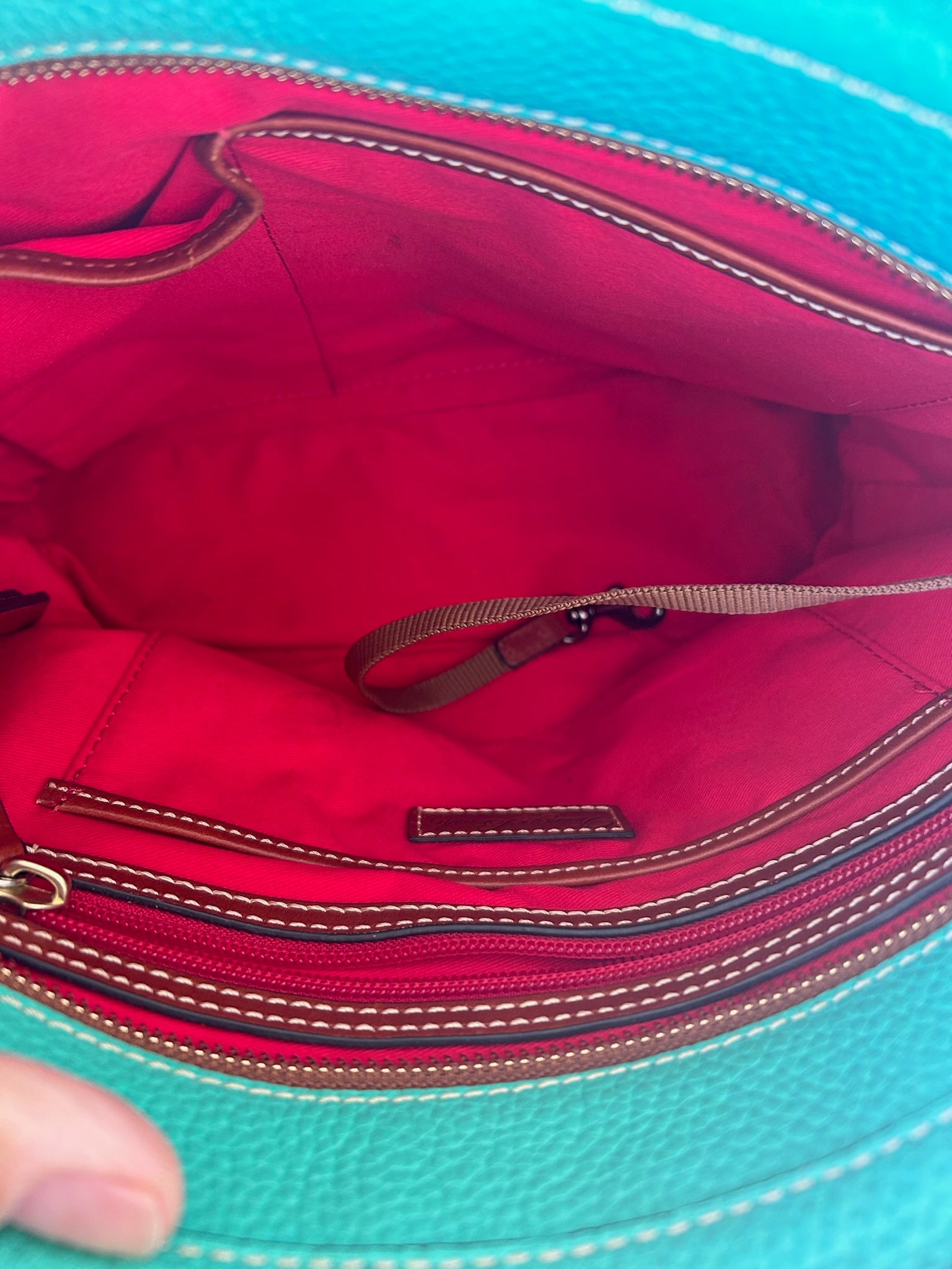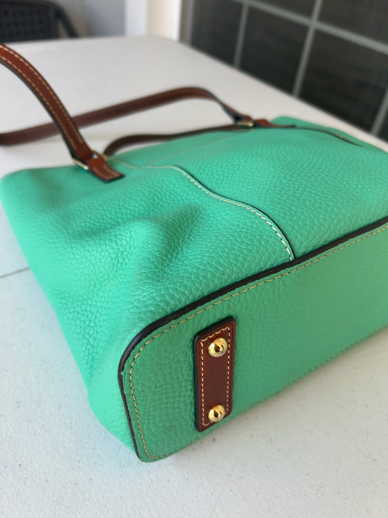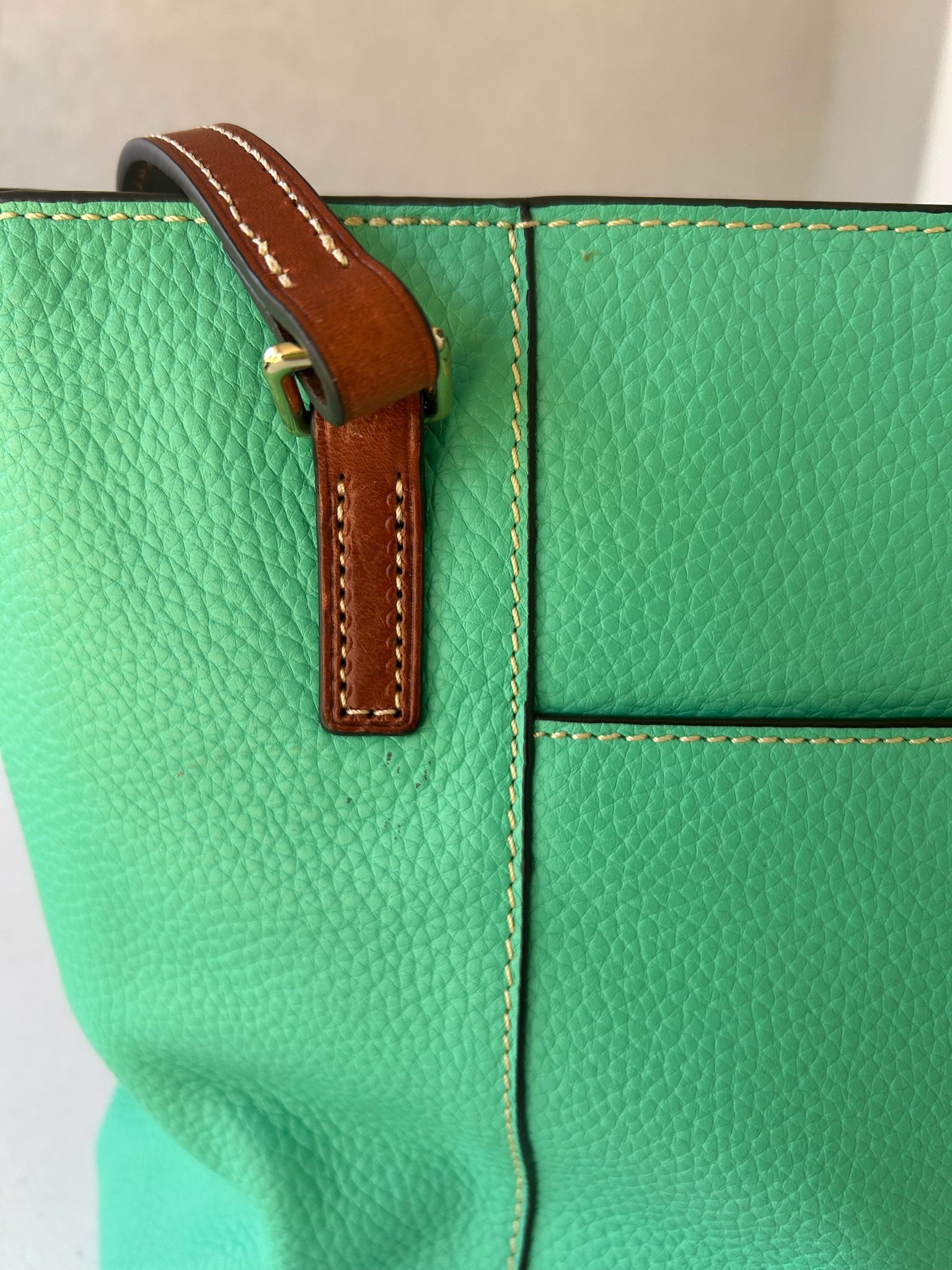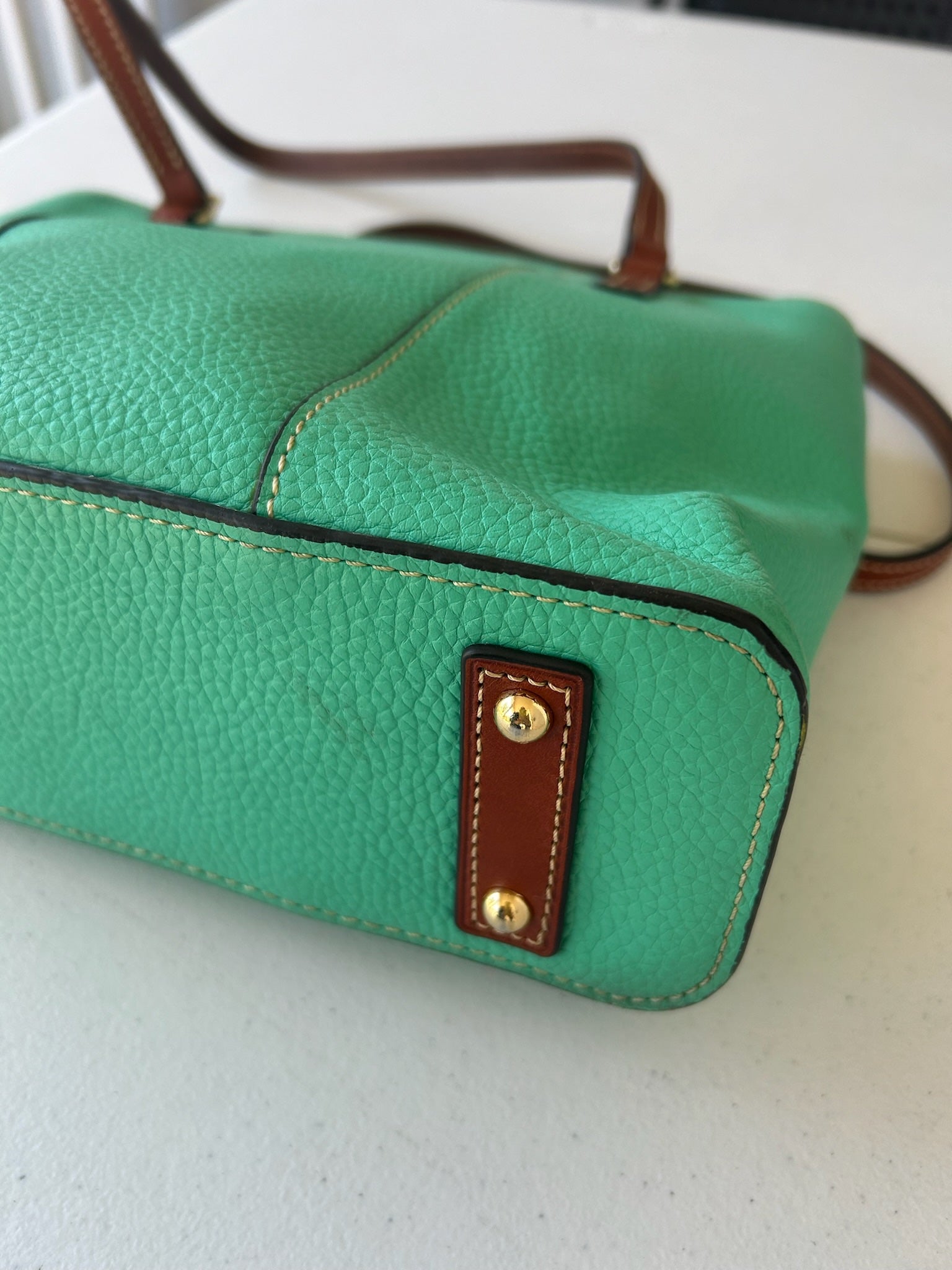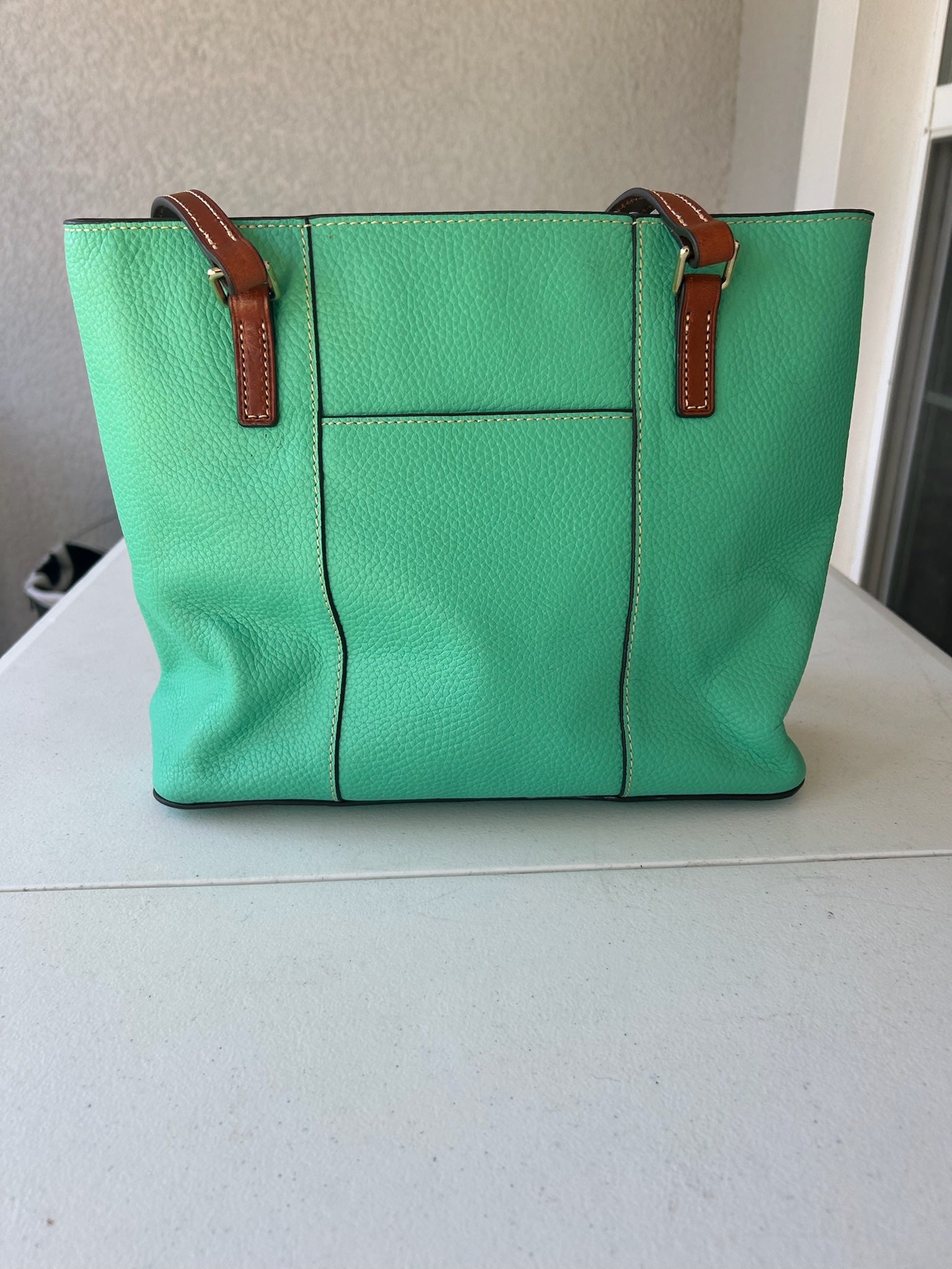 Dooney and Bourke recycled bag. This bag is in good condition. Minor marks in outside of bag that can be seen in pics. Inside of bag is clean, previously used but in great condition.