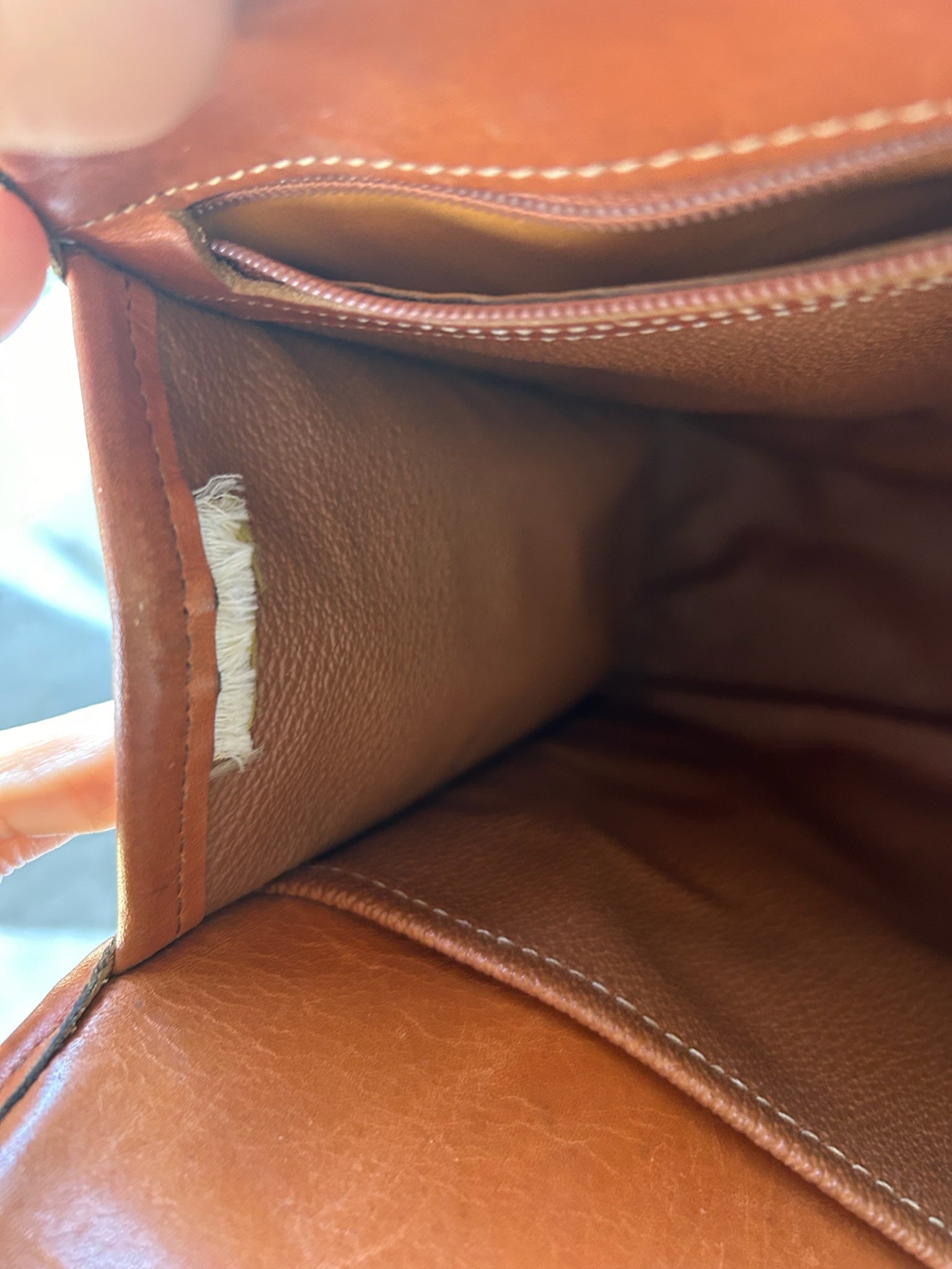 This bag is perviously loved. This bag has some rubbing on corners and small stains inside. See pics
