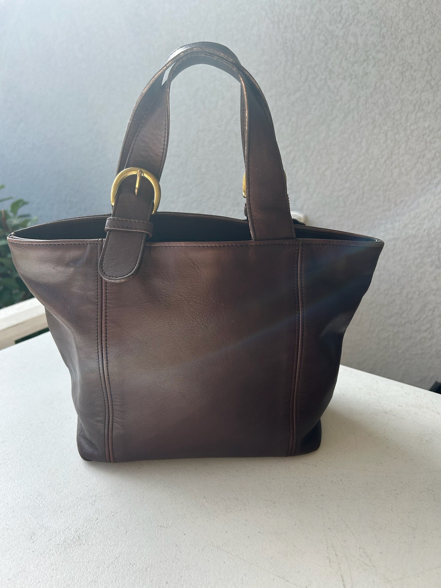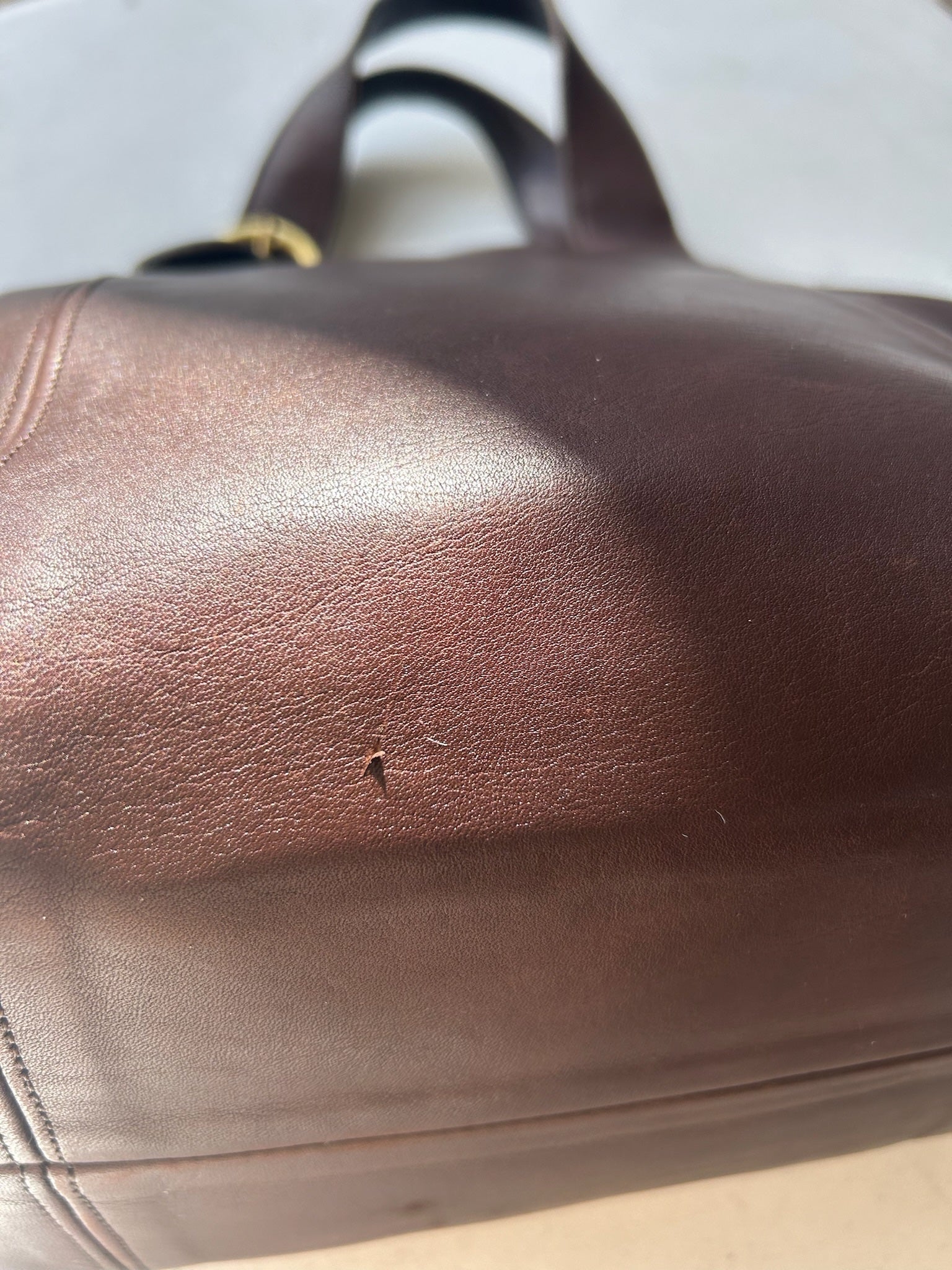 Style Name: Coach Waverly Style Number: 4133 Color: mahogany Year Made or Made Prior to 1994: 1997 Made Where: Turkey Original Hang Tag: yes Condition, Positives, Flaws, Items to Note: Case has SCRATCHES and marks, nicks on outside see pictures. Corners show wear. See pics. Inside clean. Any repairs, cleaning/conditioning products used, dunking, etc: Bag has been cleaned or conditioned. No coloring: tested with Lexol No dunking, paint, dye, shoe polish or shoe crème. No odor. Preventative measure: all bags are spritzed/wiped with either white vinegar.